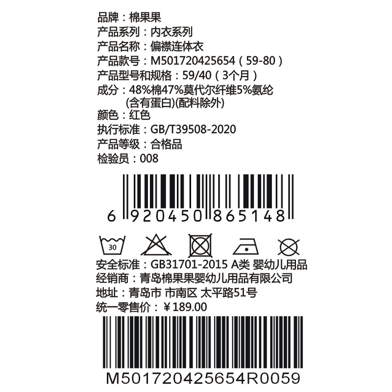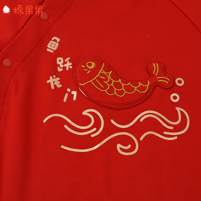 棉果果冬季新品莫代尔牛奶纤维59-80码柔软顺滑新年喜庆红色爬衣偏襟连体衣M501720425654