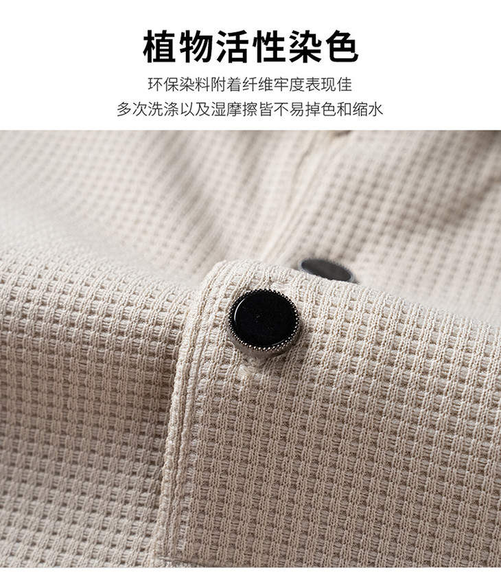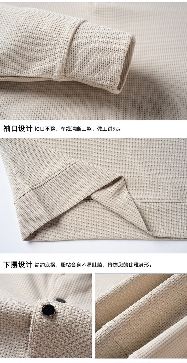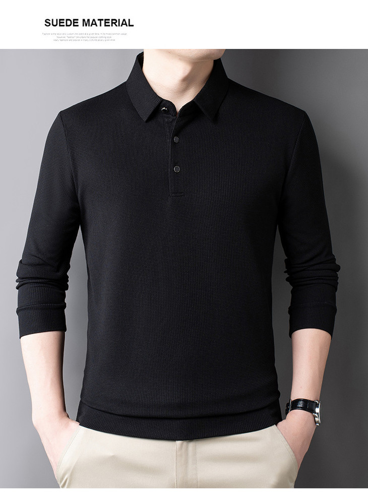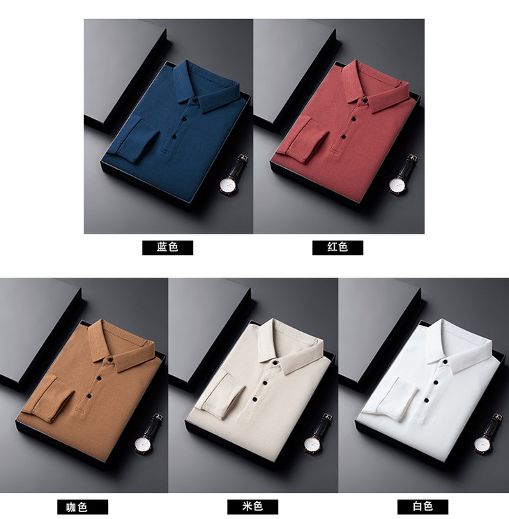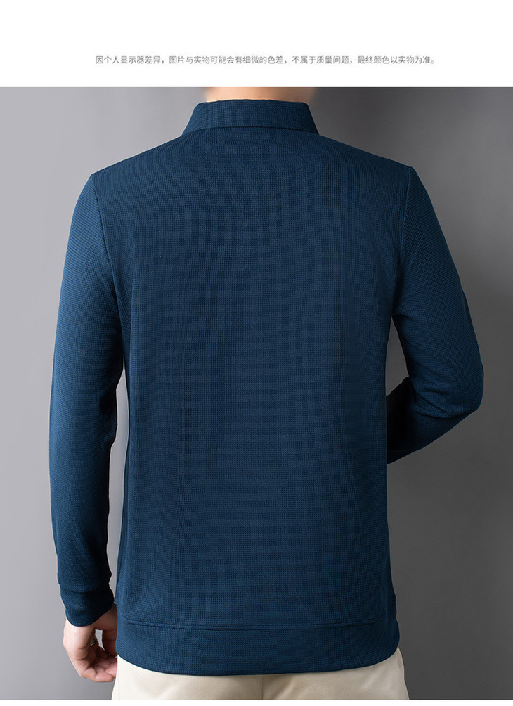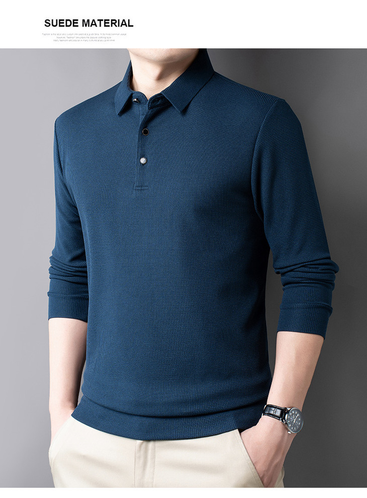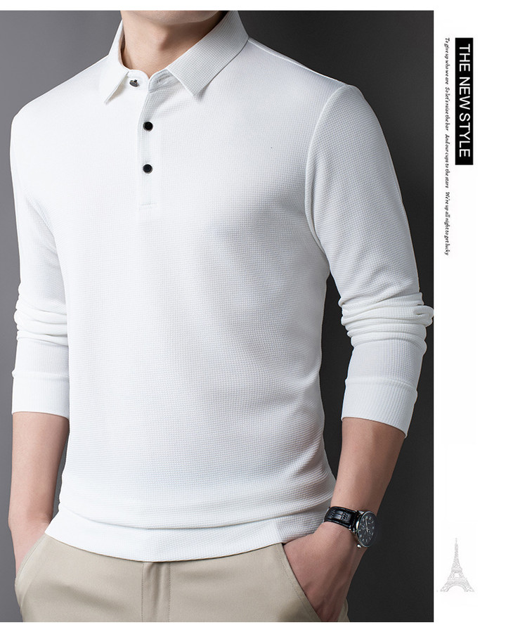 男士长袖t恤秋季新款纯色翻领华夫格POLO衫中青年休闲体恤