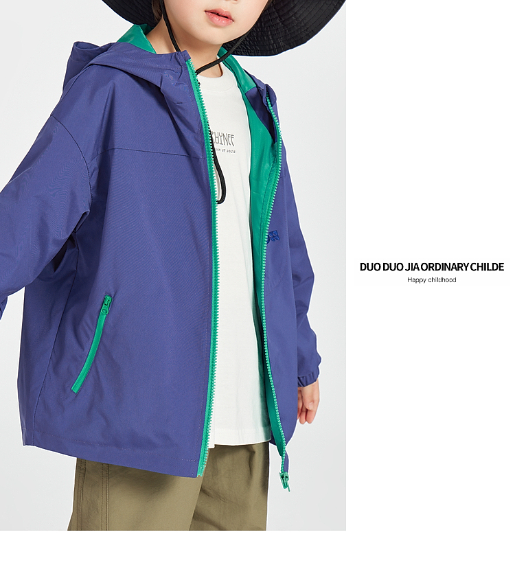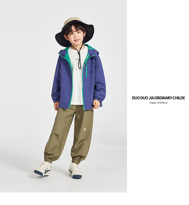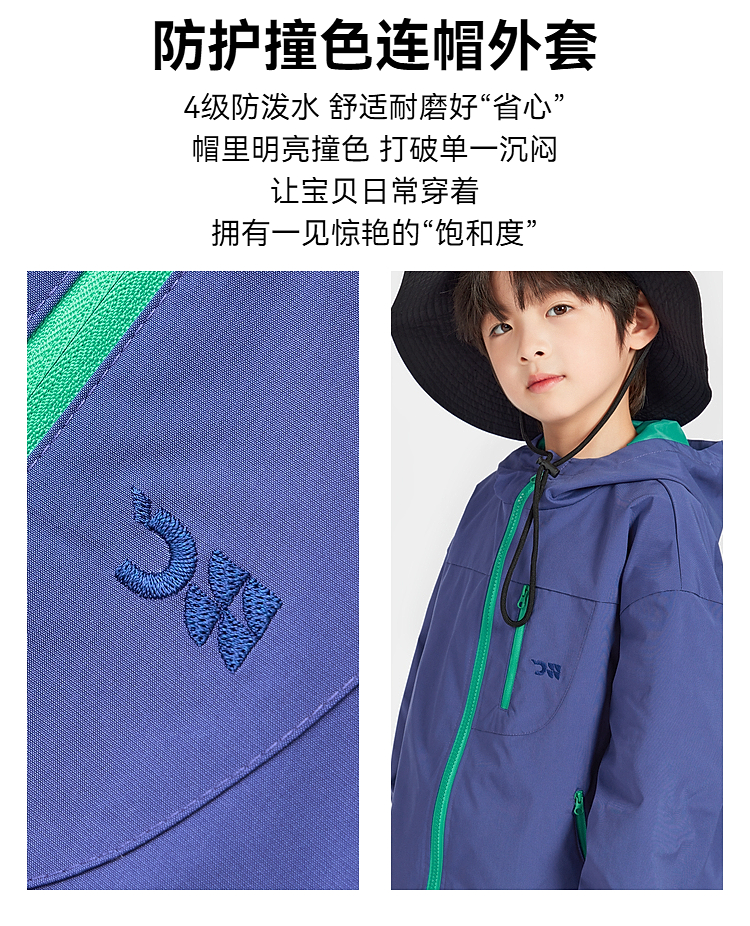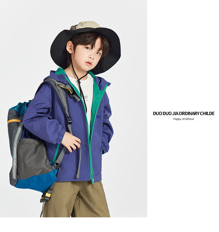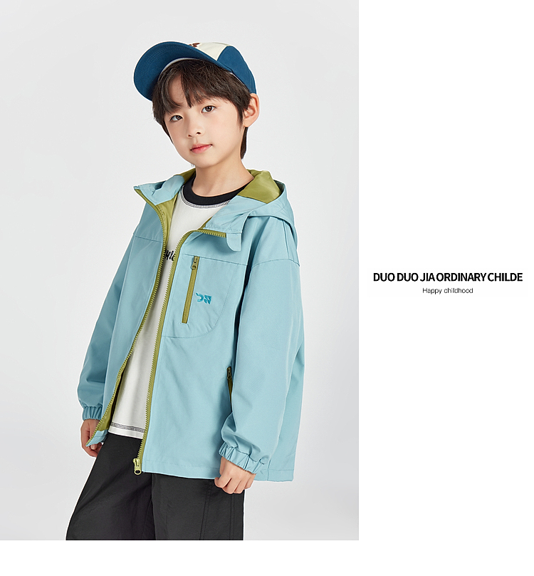 【团购价99.9】多多家男童外套防泼水儿童冲锋衣春秋款2025新款男孩户外连帽上衣10218