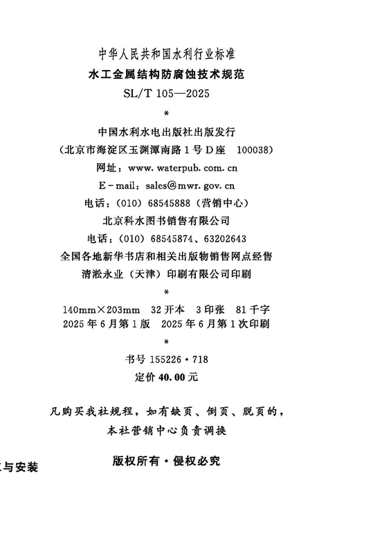 SL/T105-2025水工金属结构防腐蚀技术规范(中华人民共和国水利行业标准)