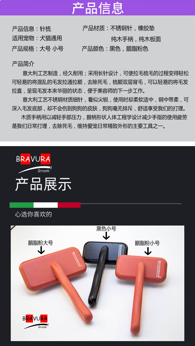 宠物美容榉木针梳 胭脂红/黑色 意大利BRAVURAGROOM