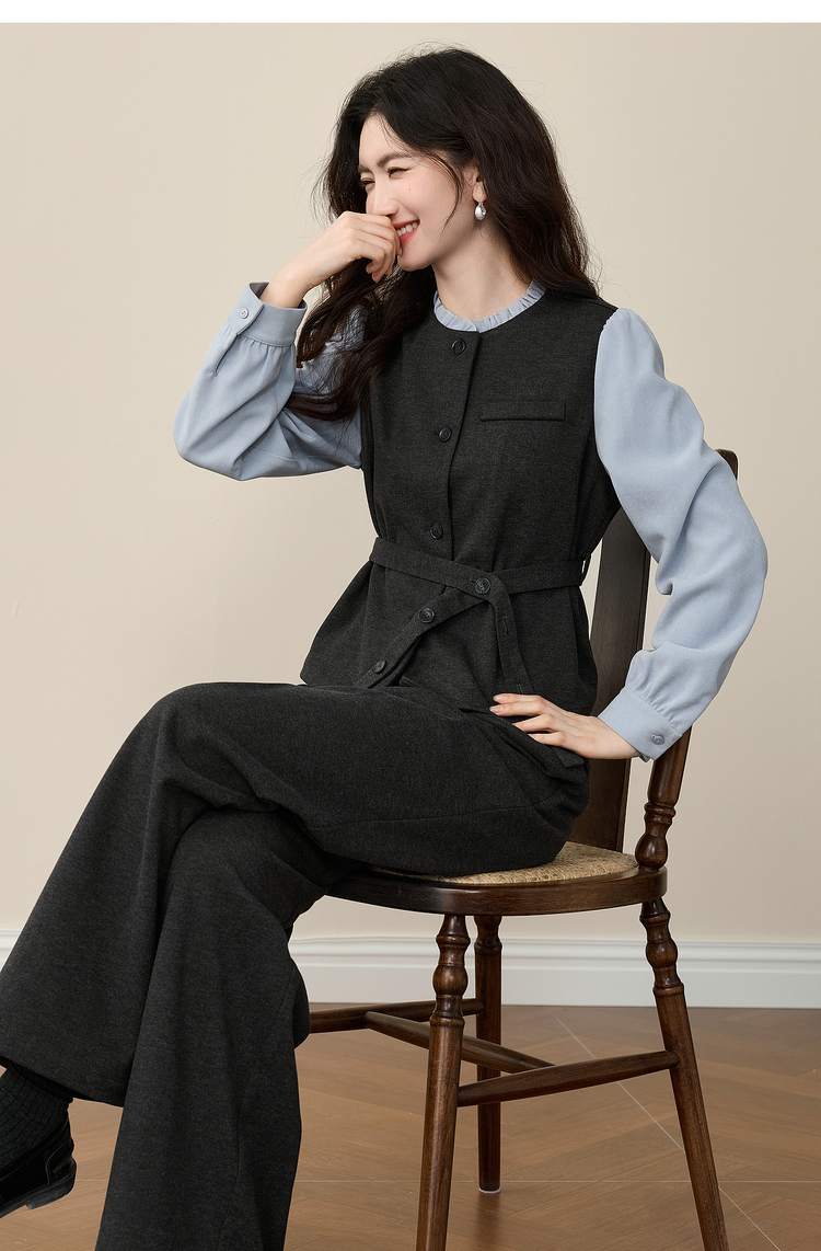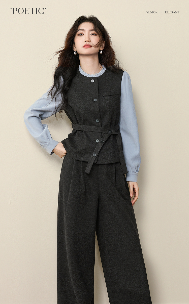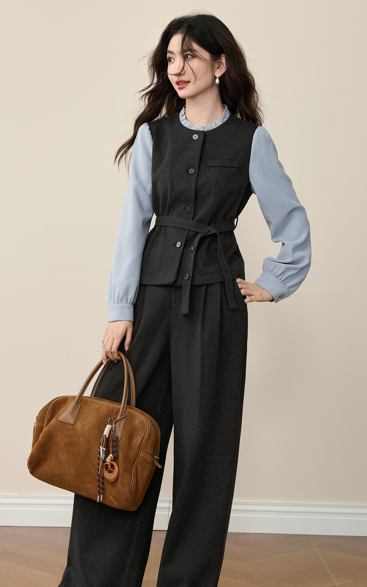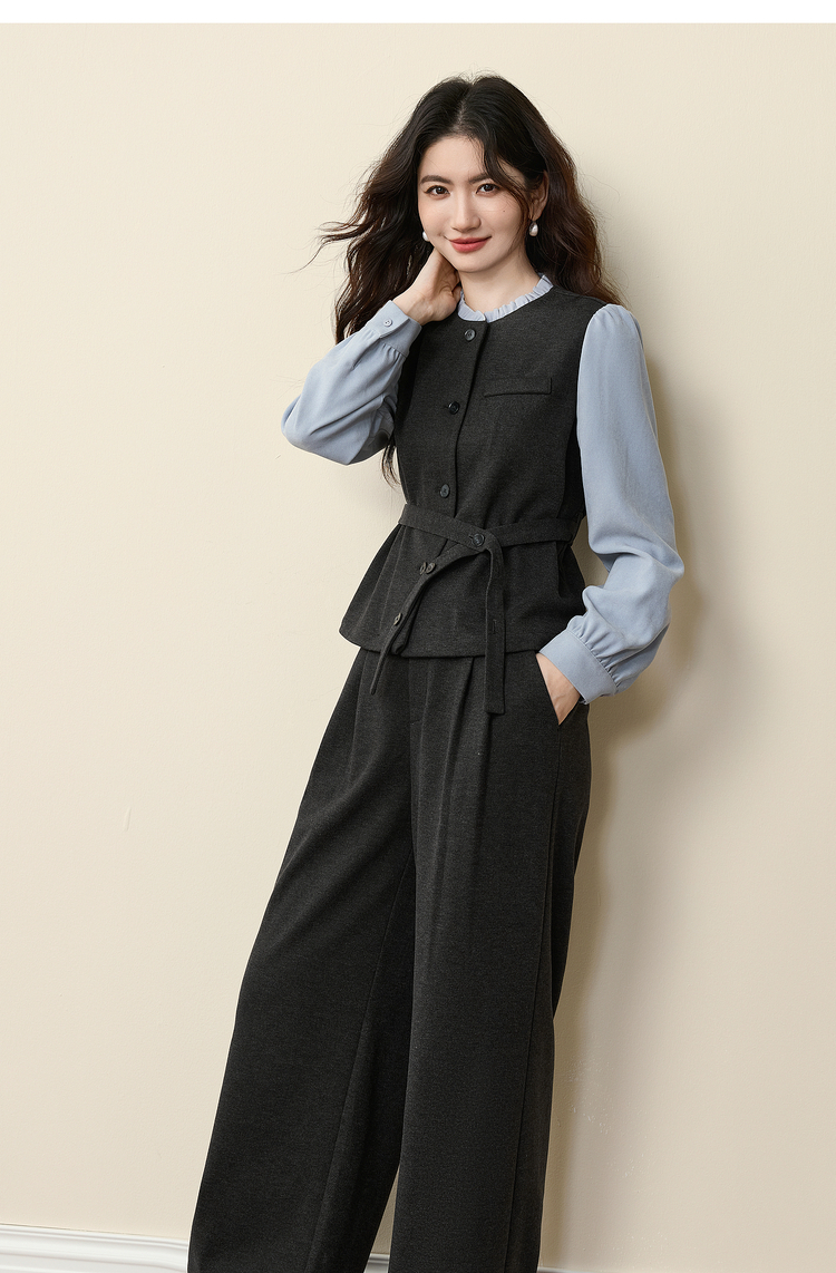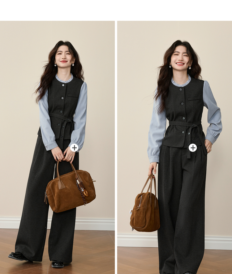 【11/19新品】熙世界高级感通勤职场风套装女装秋冬假两件磨毛衬衫阔腿裤两件套
