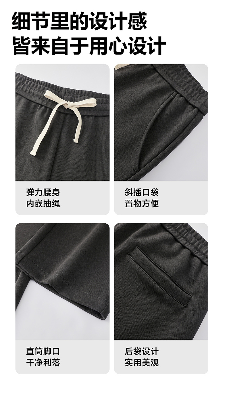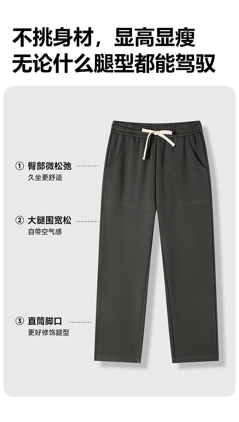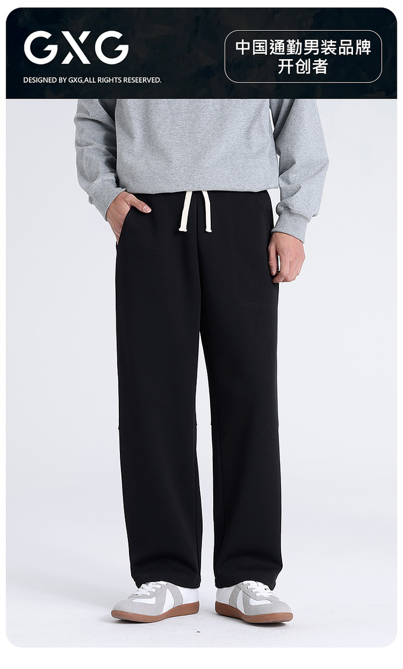 GXG男装26春季简约时尚舒适松紧腰系绳宽松直筒男式运动休闲裤K&C