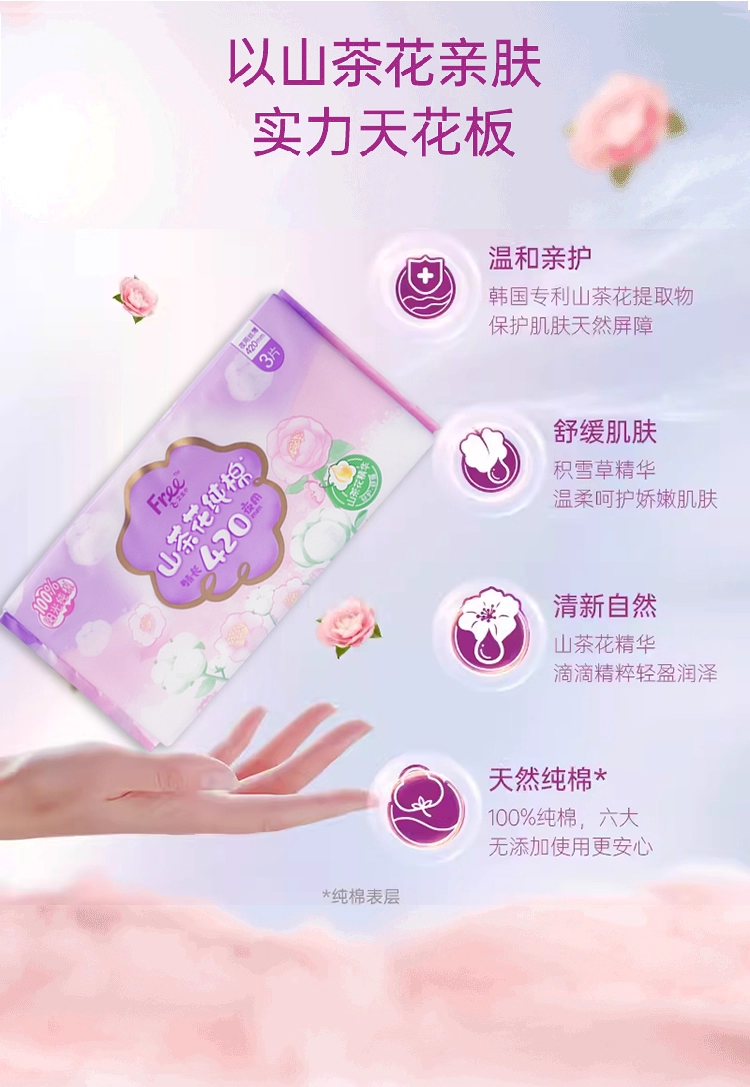 Free-飞纯棉特长夜用420mm 3P