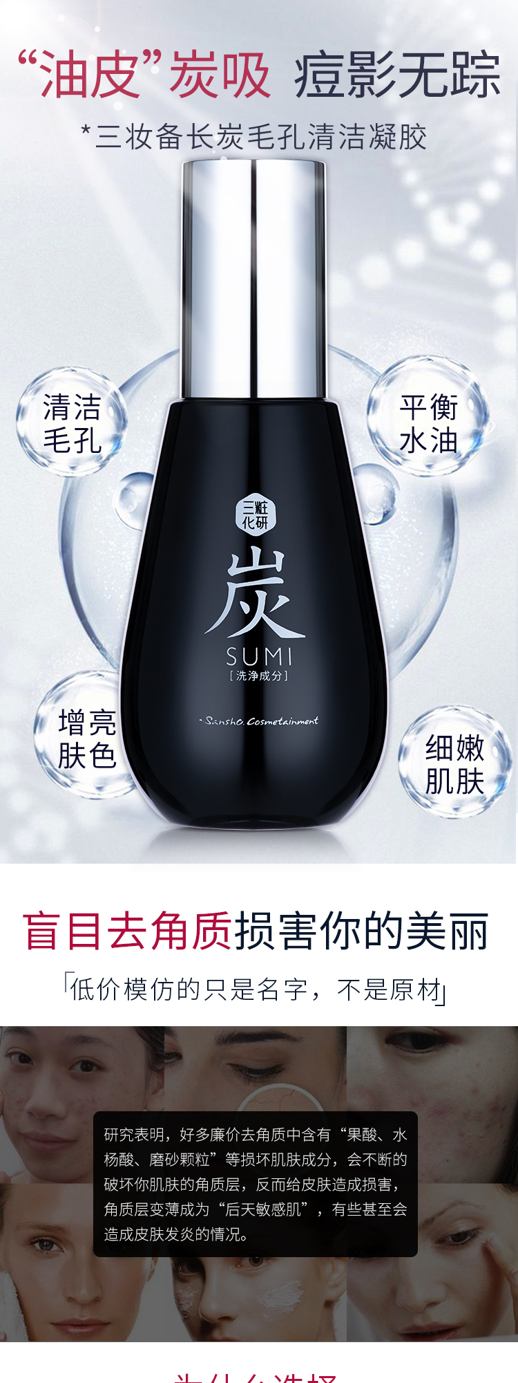 三妆化研备长炭毛孔清洁凝胶