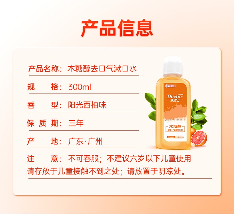 牙博士木糖醇去口气漱口水300ml*2瓶