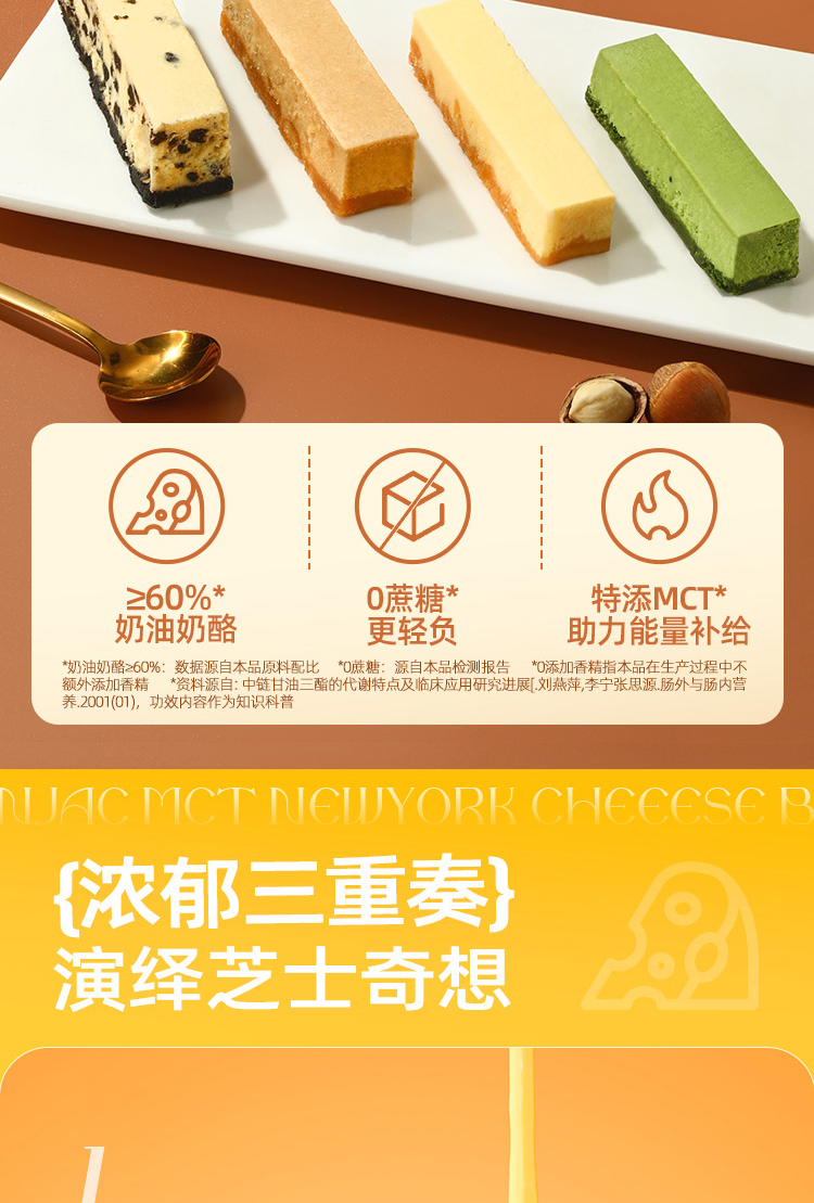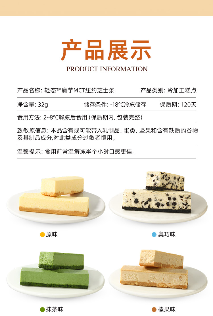 【❄️双12史低价】【冷链产品不支持无理由退货】【赤藓糖醇添加量5%】轻态™魔芋MCT纽约芝士条(原味/奥巧味/抹茶味/榛果味)