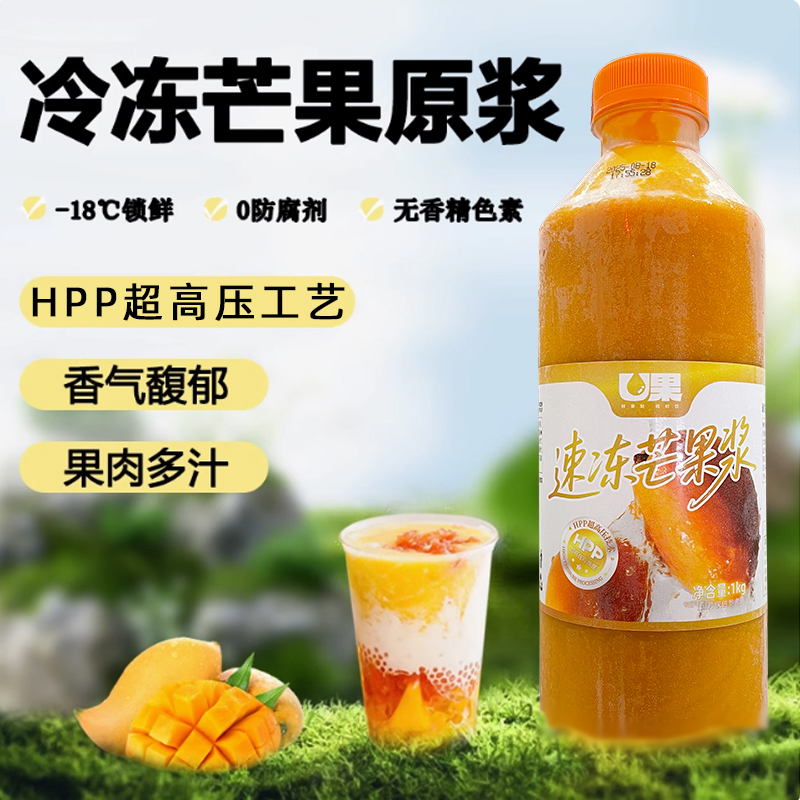 U果速冻芒果浆1kg冷冻芒果原浆果泥1kg小台农新鲜果肉汁果酱商用杨枝甘露原料