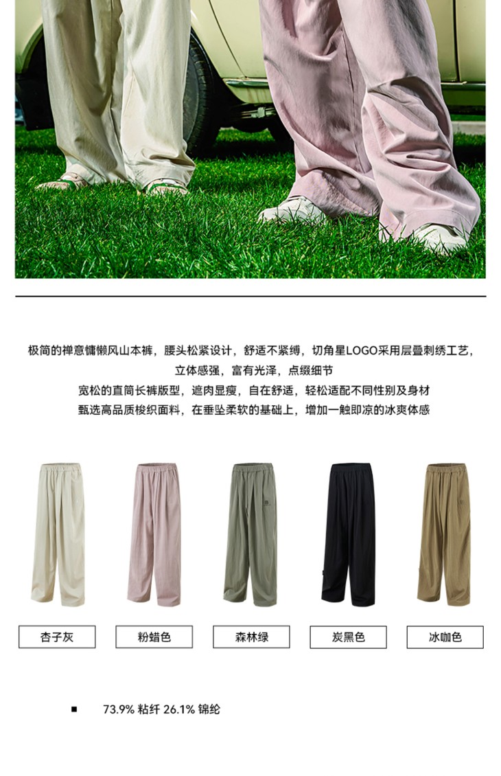 BJHG奶奶裤 凉感防晒休闲裤子男潮牌垂感直筒梭织长裤宽松山本裤