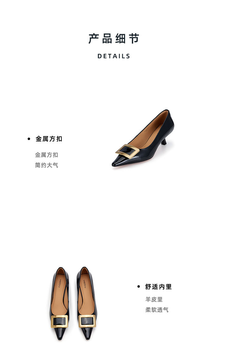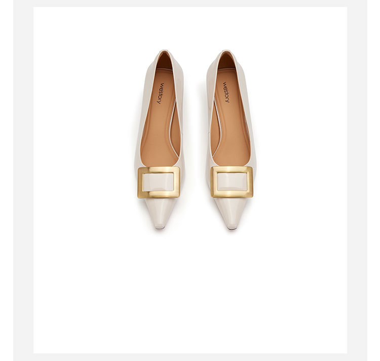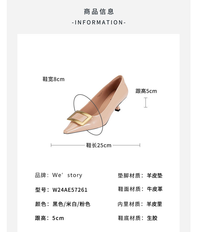 westory2024春季新款时尚细中跟尖头蝴舒适百搭小皮鞋W24AE5726101