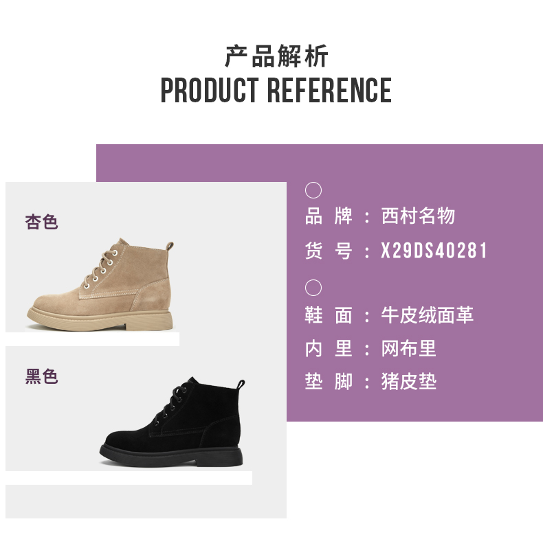 西村名物2019年冬季新款时尚短靴女时尚复古时装靴X29DS40281