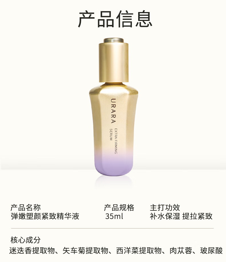 悠莱弹嫩塑颜紧致精华液 35ml 精选多重珍稀植萃,补充肌肤养分,紧塑面部轮廓