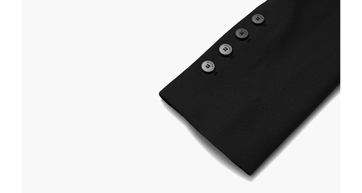 微宽肩直筒长袖,高开衩袖口搭配定制logo细纽扣点缀利落造型。