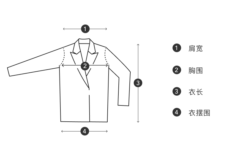 | 尺码 | 号型 | 适合身高 | 衣长 | 肩宽 | 胸围 | 衣摆围 |
