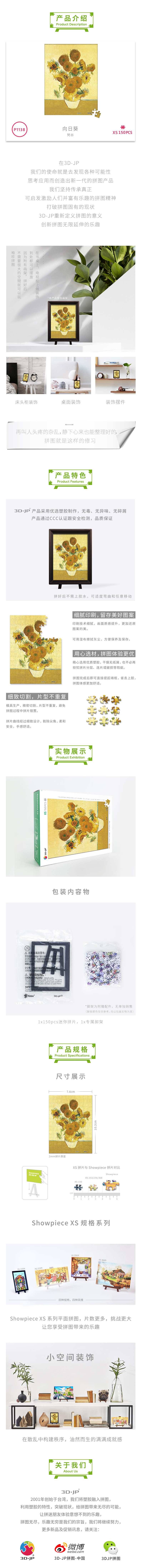 150片 迷你平面拼图 塑料拼图P1138 梵谷-向日葵