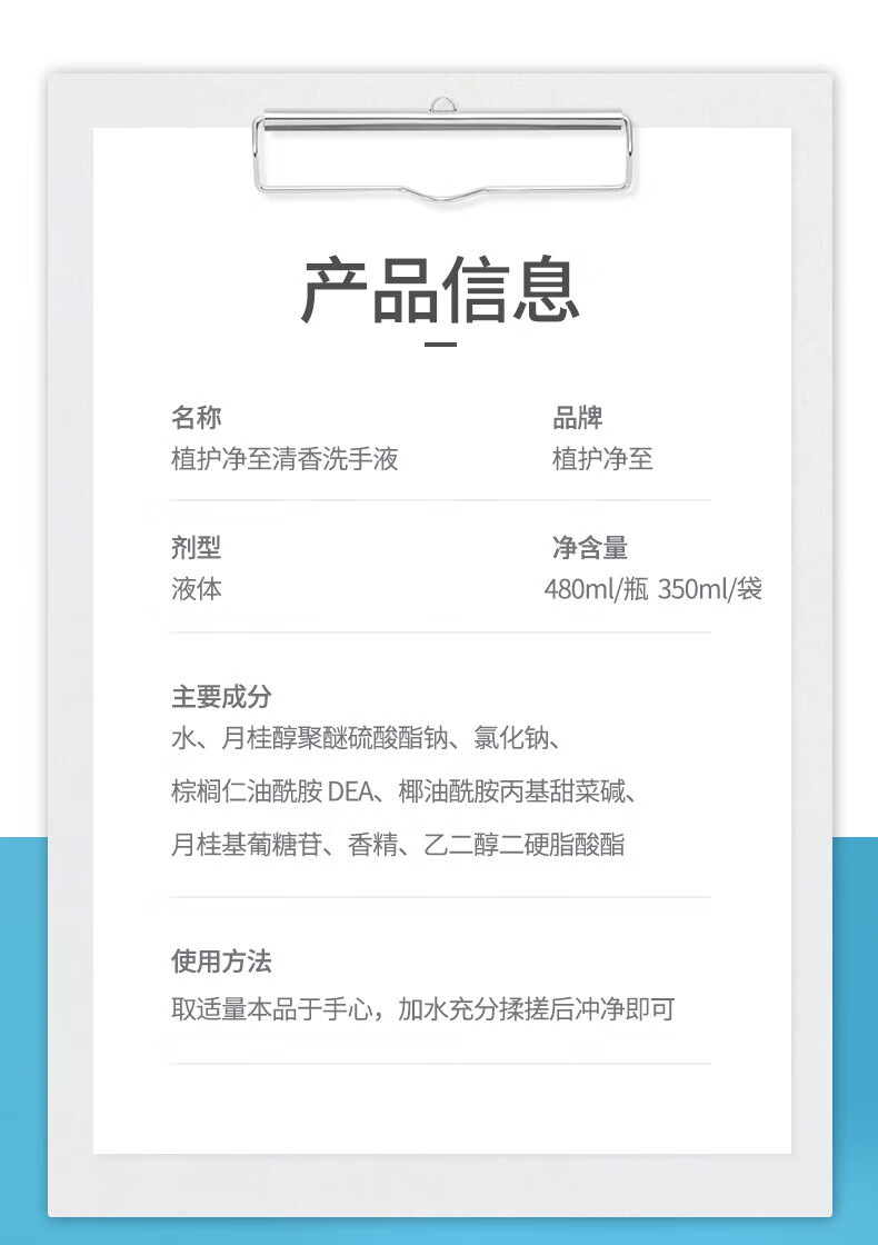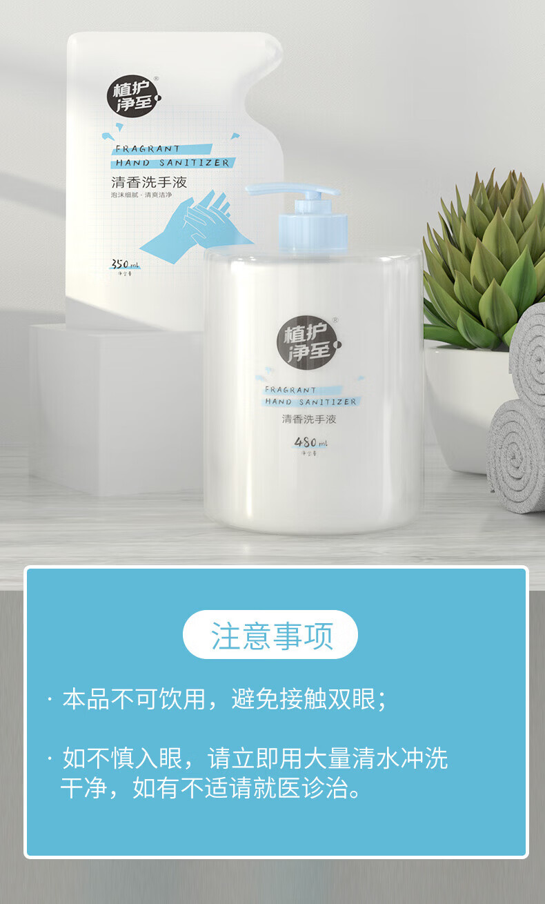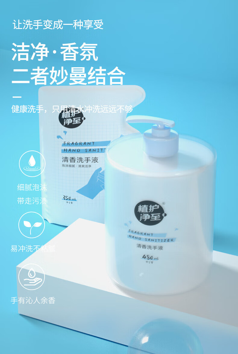 【分仓直发包邮】植护净至清香洗手液瓶装480ml/瓶