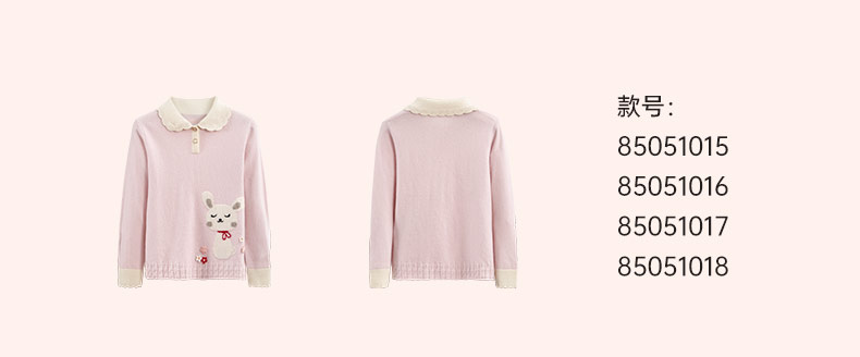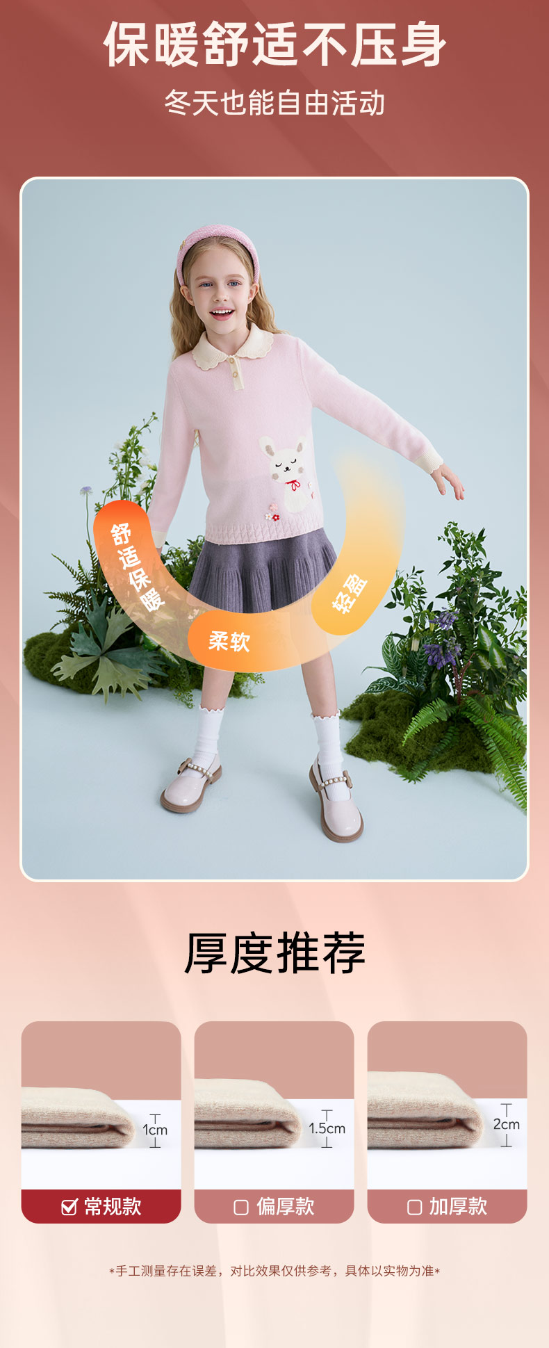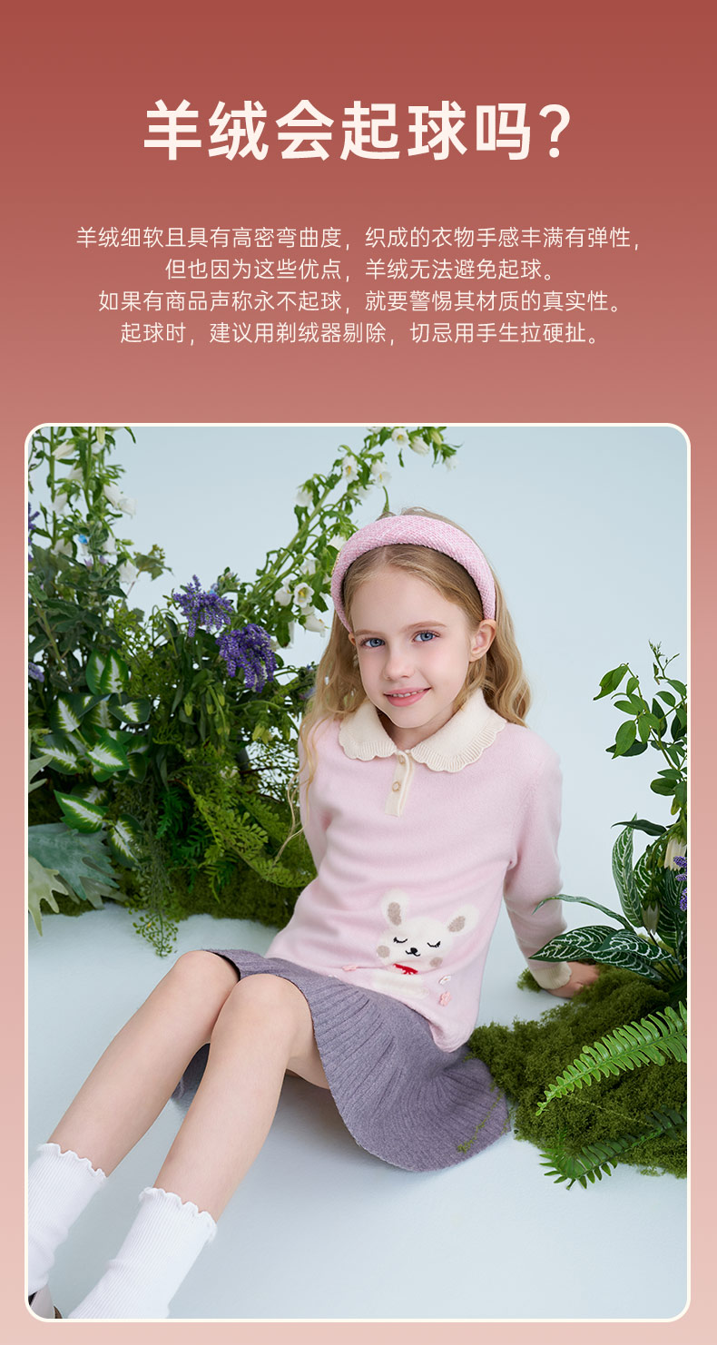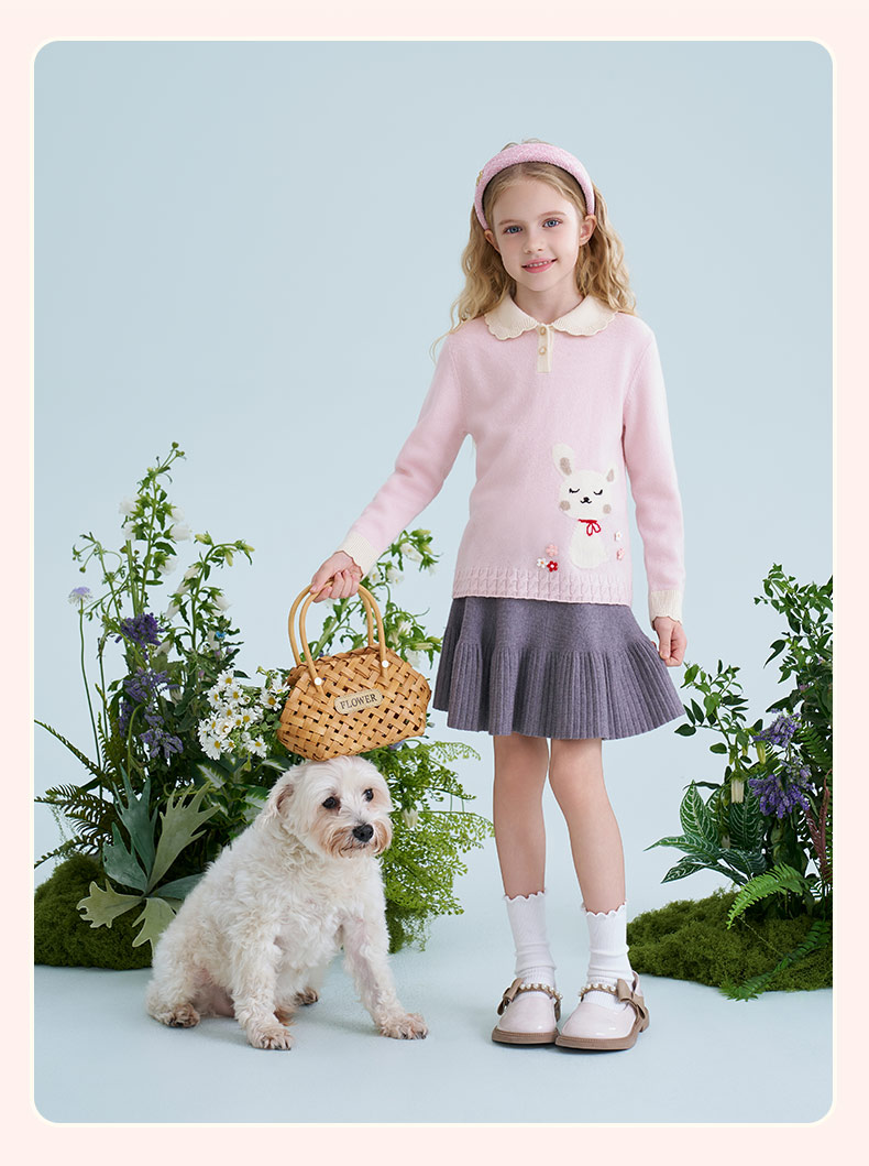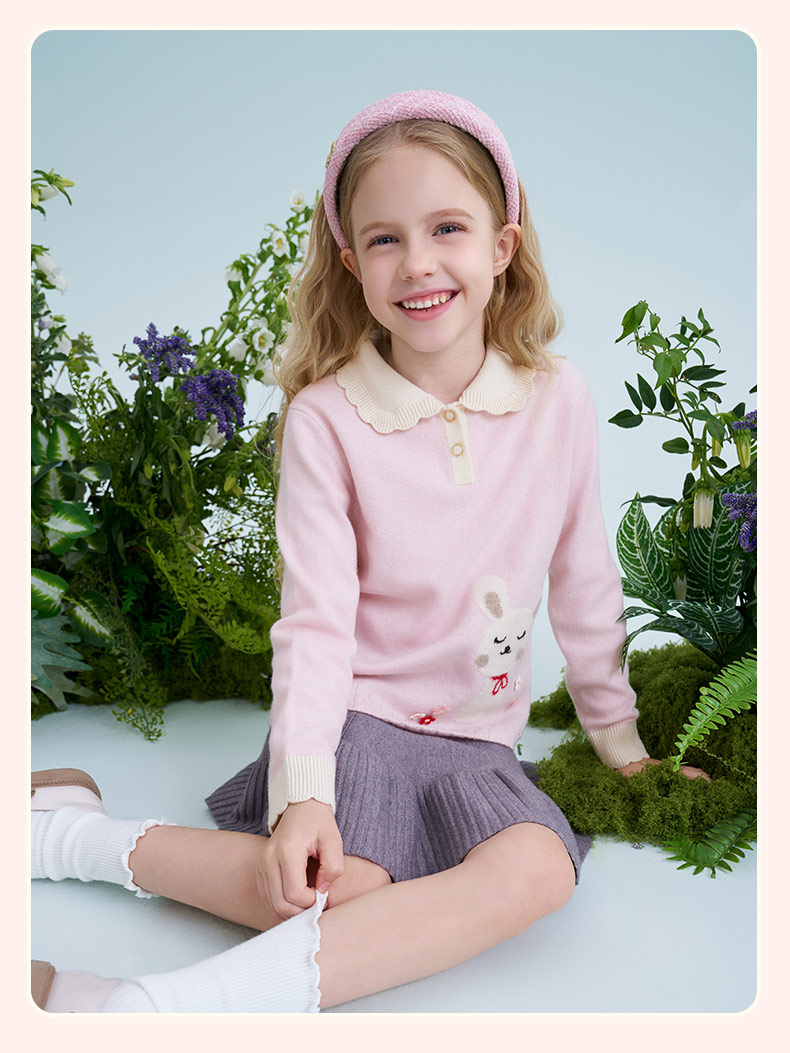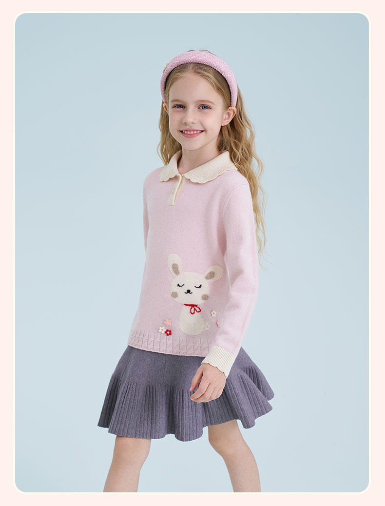 mettekids儿童100%羊绒衫2025春季新款女童粉色甜美翻领针织毛衣