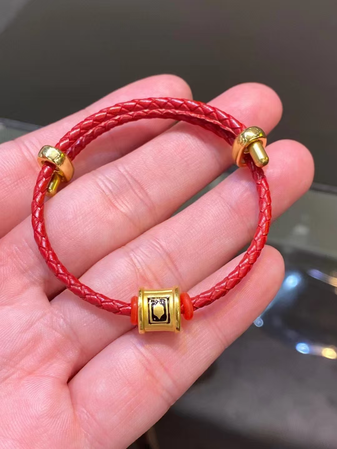 【38甄选】999足金麻将转运珠手绳/礼盒包装