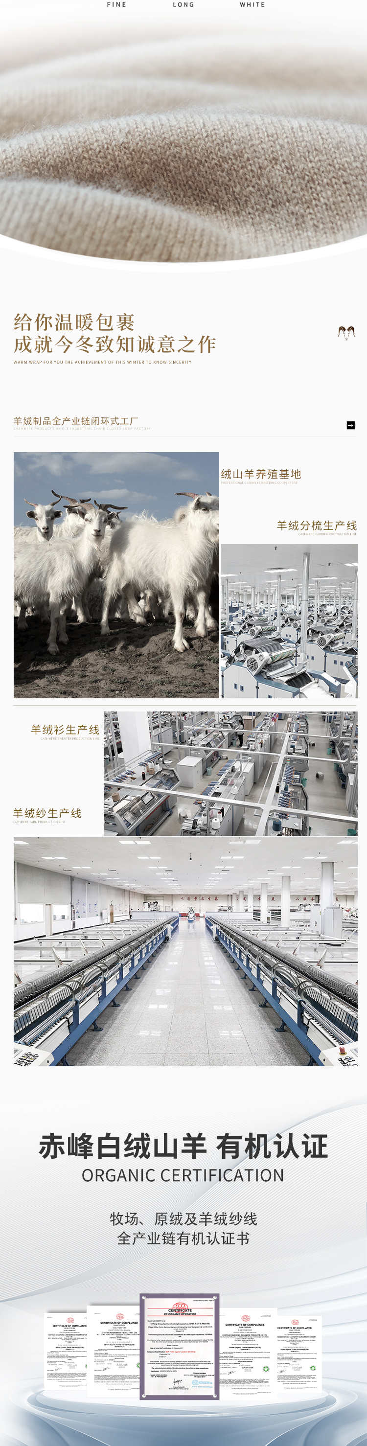 东黎羊绒是赤峰东荣集团自主品牌,自有牧场/羊绒制品全产业链优势,实现了羊绒从“牧场”到“商场”的华丽转变。