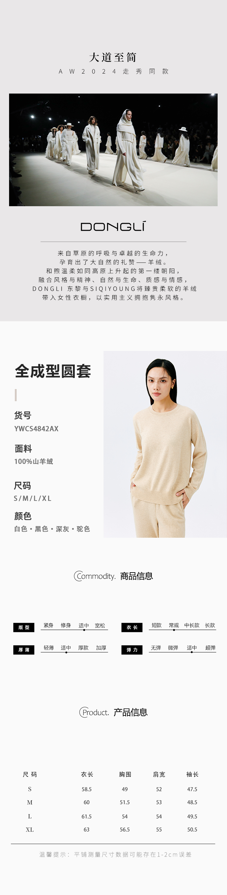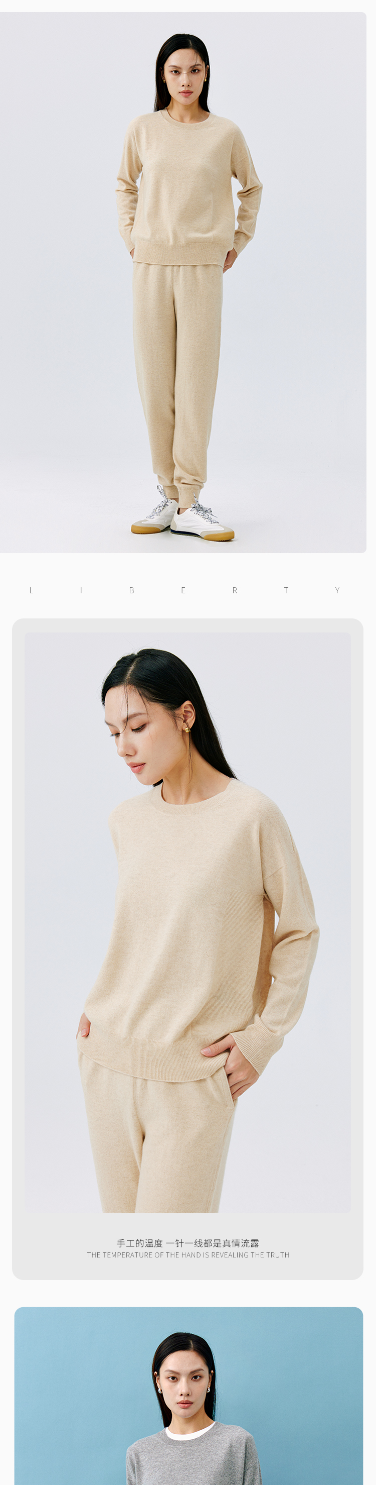 东黎 • 山羊绒女士秋冬全成型圆领百搭长袖套衫 4842