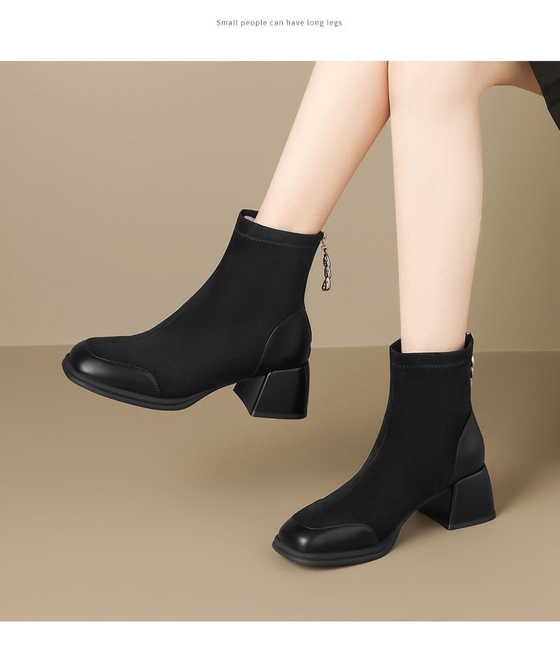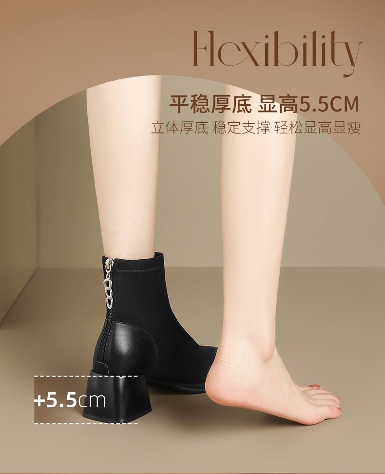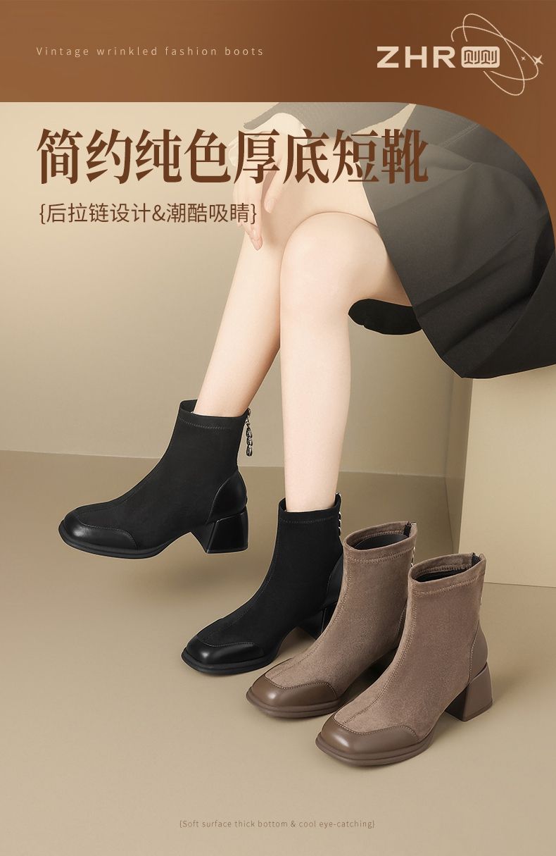 ZHR则则时尚气质厚底增高短靴时装靴子2024新款百搭通勤优雅女鞋