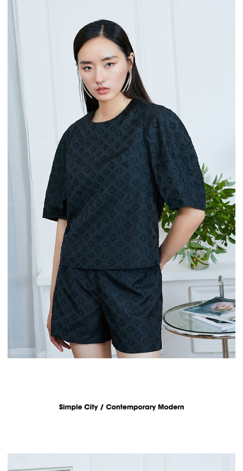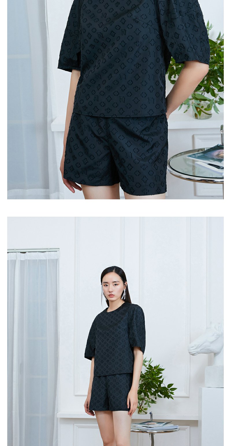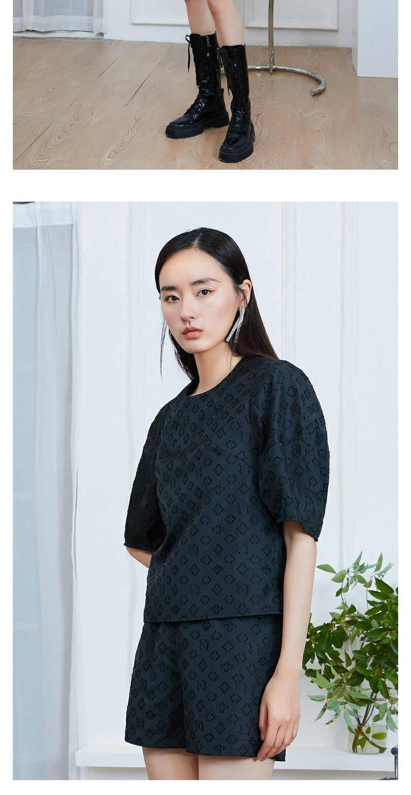 NEELLY纳俪商场同款圆领上衣+五分裤两件套盐系炸街老花暗纹套装N22074Z04401