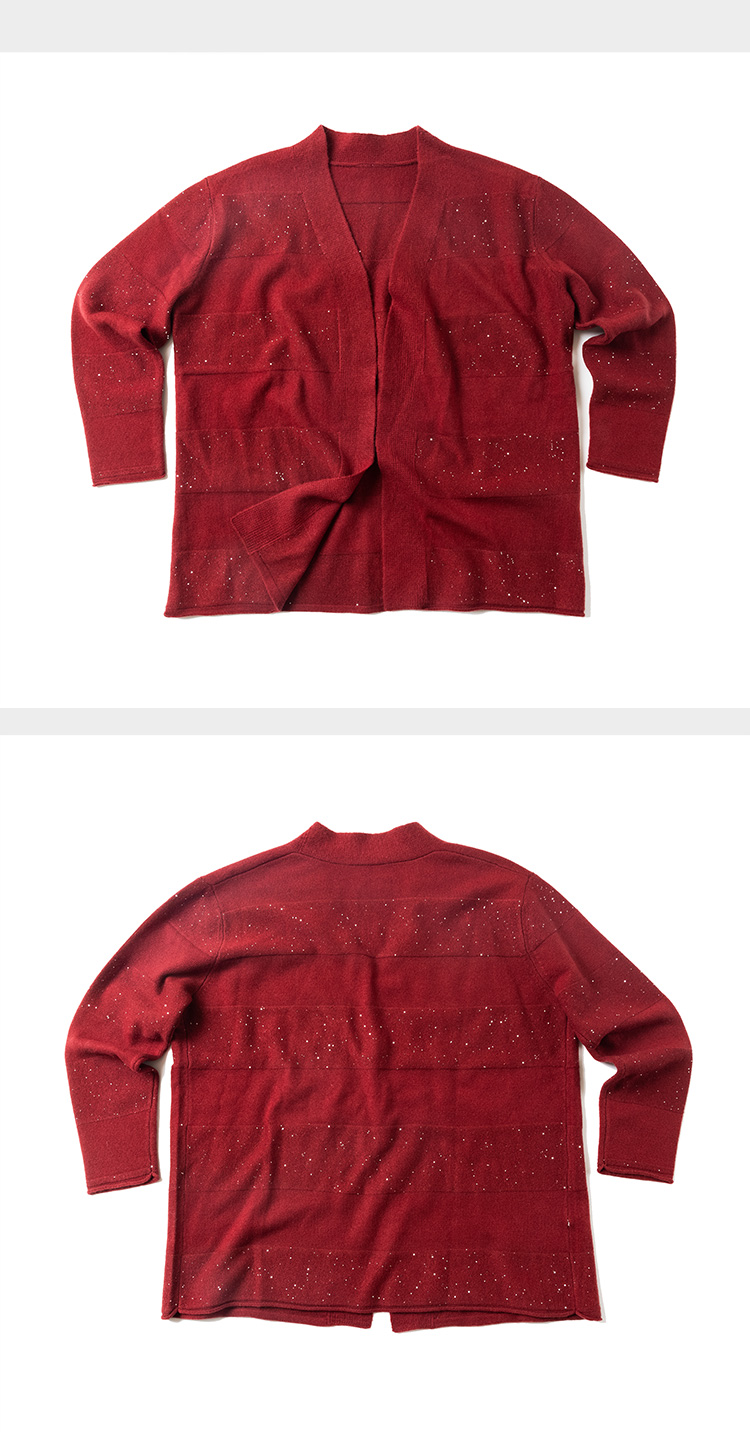 100%羊毛 小金片装饰宽松中长款开衫