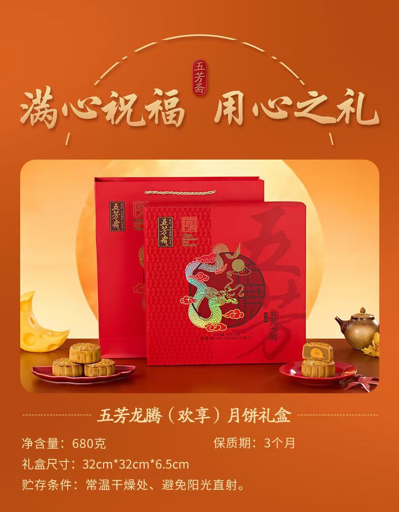 五芳斋龙腾月饼礼盒【9饼9味680g】广式月饼中秋送礼