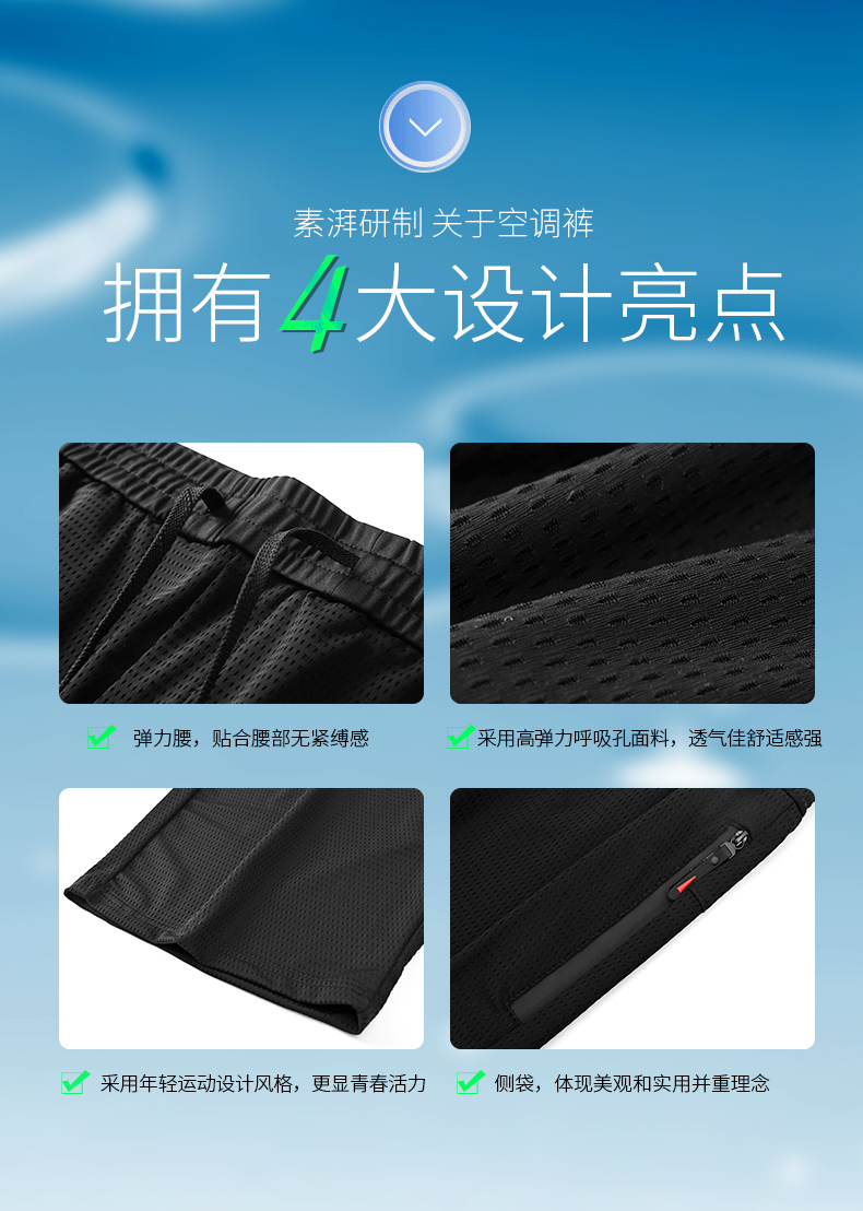 Supield素湃黑科技网眼冰丝空调裤凉感夏季薄款运动裤短裤男