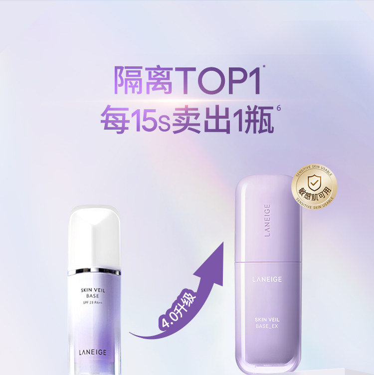 【全新升级】兰芝雪纱丝柔修颜隔离乳40号(紫隔)118284 防晒打底矫色修颜提亮遮瑕
