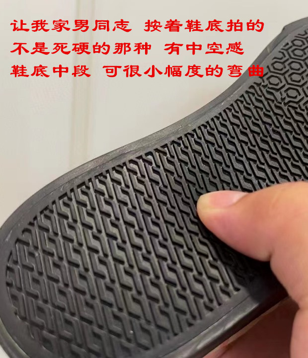 鞋垫有一点点厚度 全橡胶鞋底 不是死硬的那种 可很小幅度的弯曲