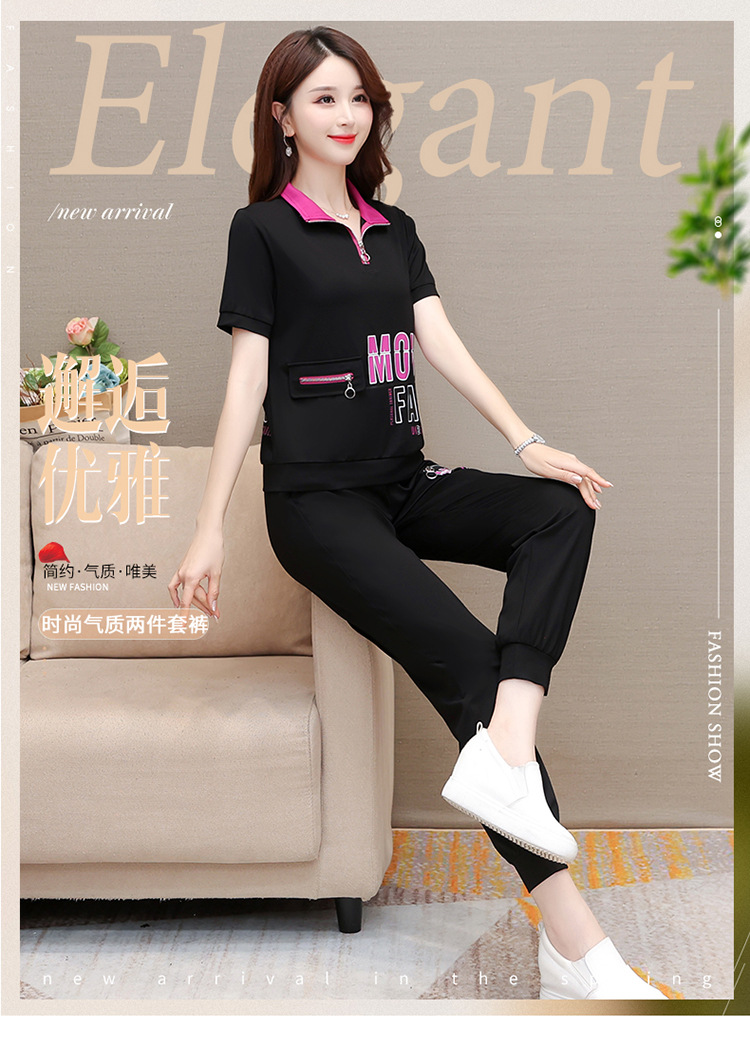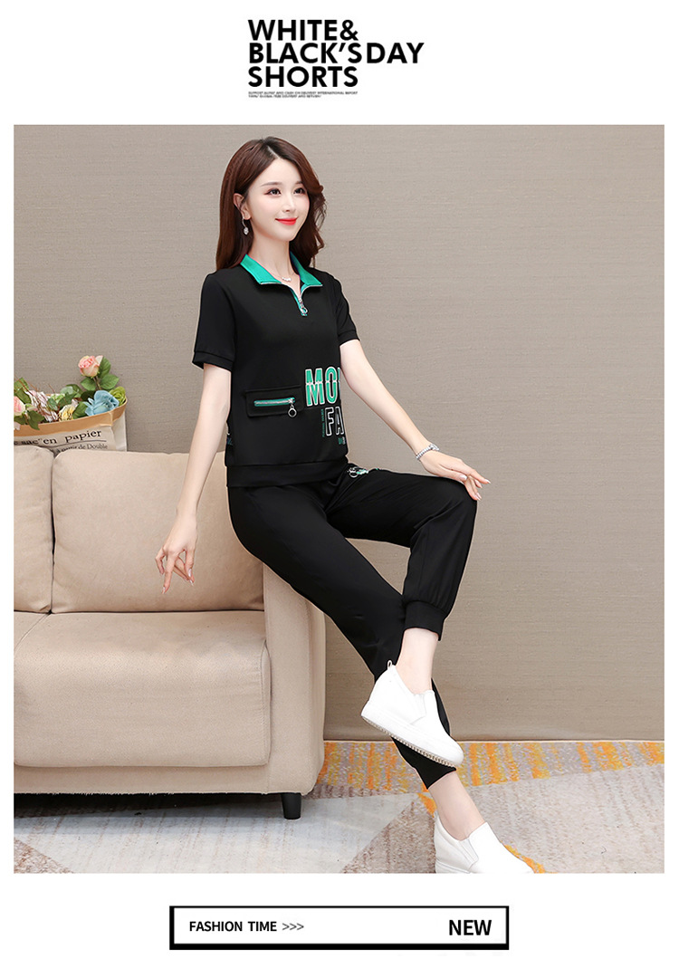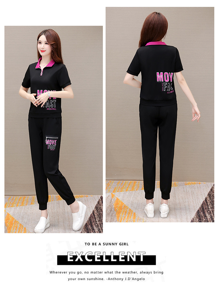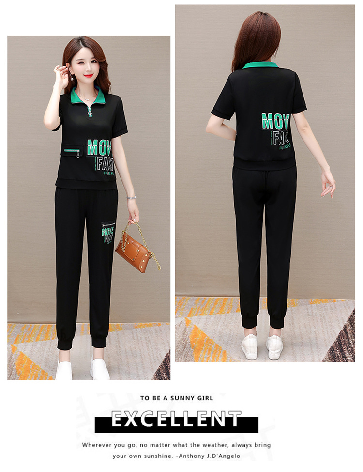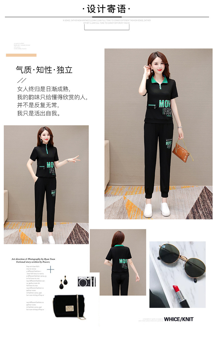 宽松时尚,POLO领小衫长款休闲气质束脚裤两件套QYM-CR-SD5855-L