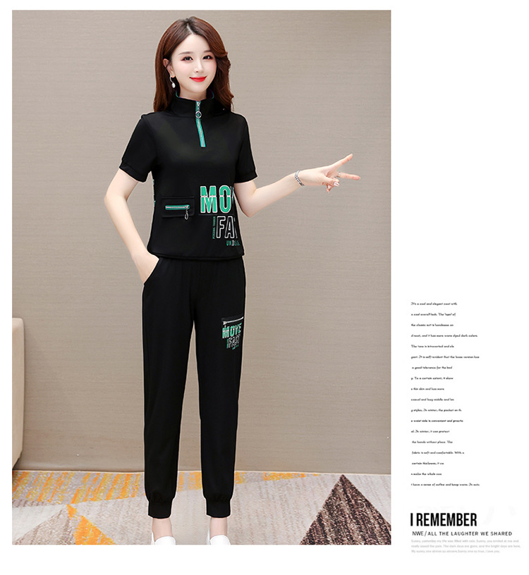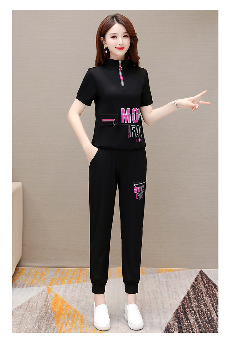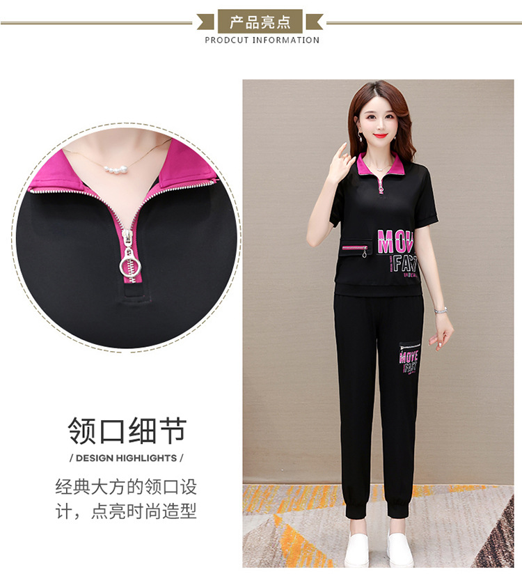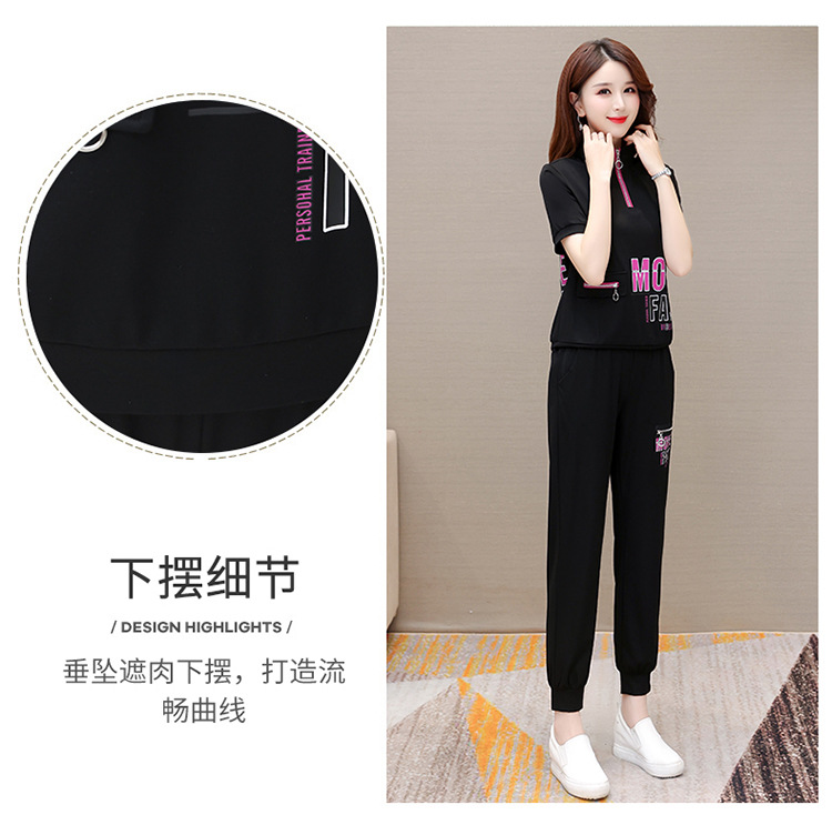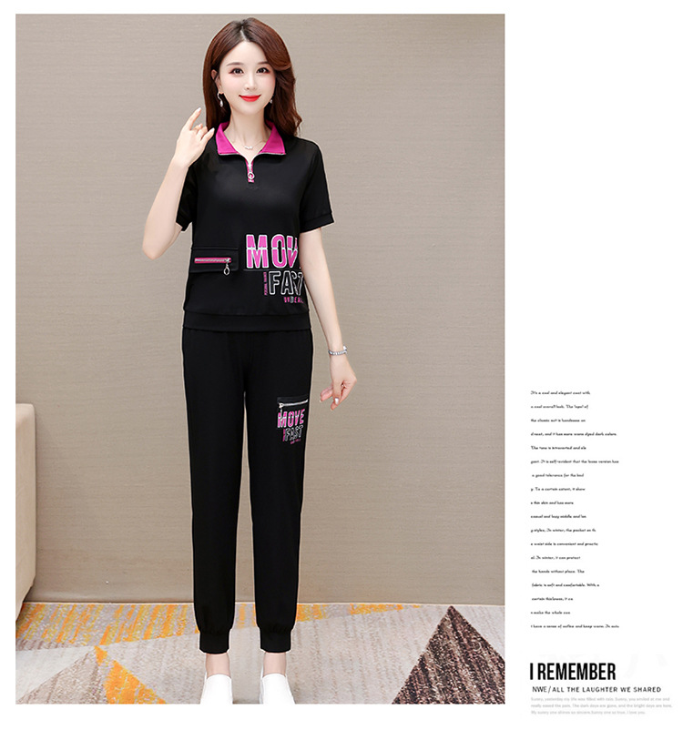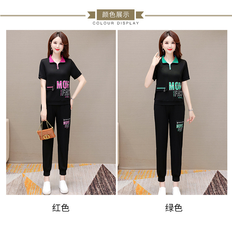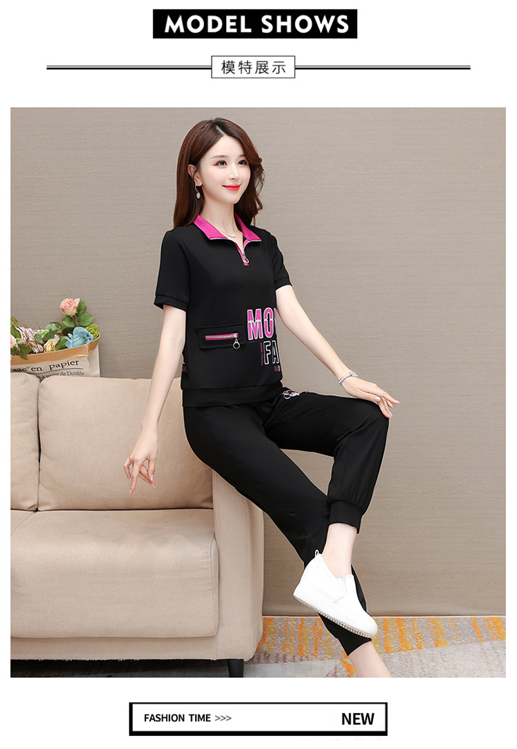 宽松时尚,POLO领小衫长款休闲气质束脚裤两件套QYM-CR-SD5855-L