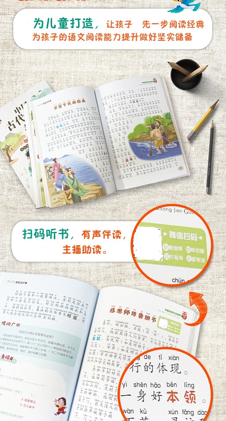 1.专为儿童打造,让孩子领先一步阅读经典,为孩子的语文阅读能力提升做好坚实储备。2.大字加注拼音,常用词组突出显示,方便孩子熟记,练就出众的语文素养。3.美绘插图,将内容与形式完美结合,增添了趣味性,便于孩子理解文意。4.扫码听书,有声伴读,知名主播助读。5精心设计闯关游戏,便于孩子把握故事的核心要点,体味阅读的快乐。