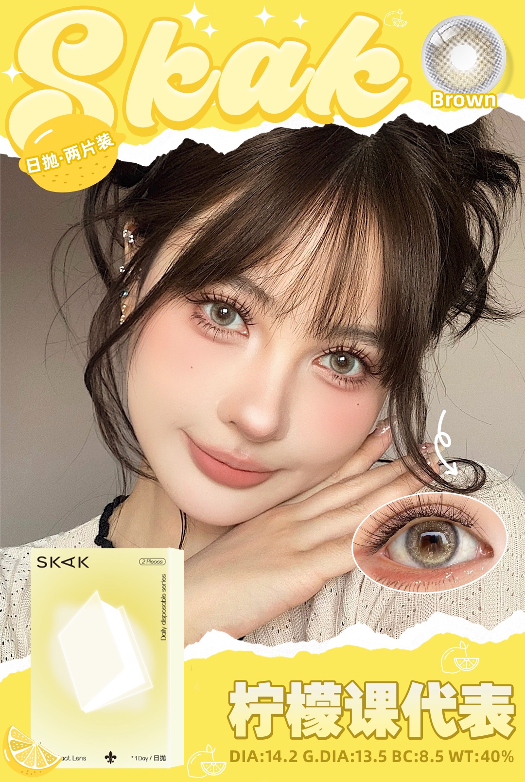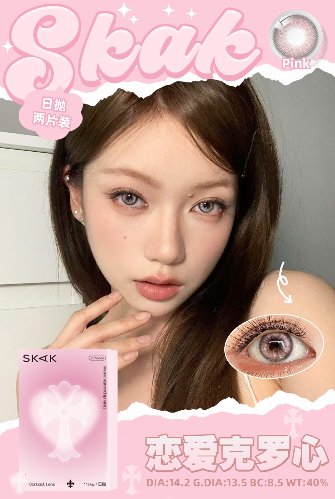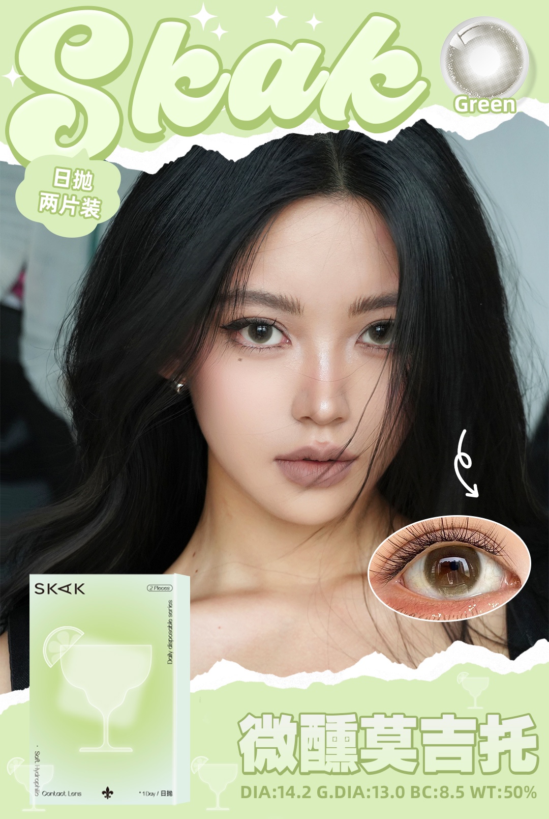 skak日抛 恋爱克罗心/柠檬课代表/芥末夏威夷/微醺莫吉托/內娱角色卡 10片装 14.2-14.5mm 日抛无售后!!绿灰棕粉黑