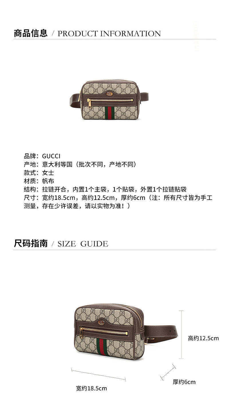 GUCCI/古驰 女士Ophidia系列帆布小号腰包 517076 96I3B