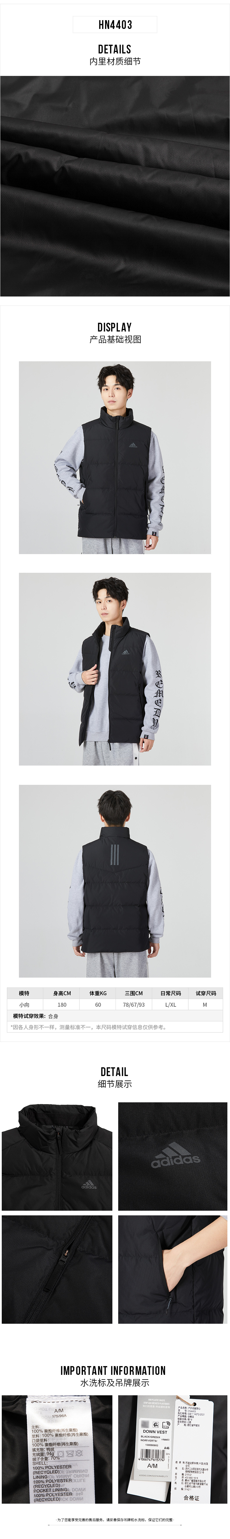 阿迪达斯(adidas) 官方网男装羽绒马甲 22秋冬新款运动服户外防风保暖背心跑步训练休闲夹克外套 HN4403/含绒量70%/偏大一码
