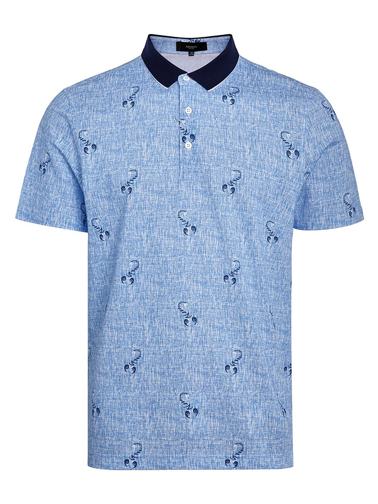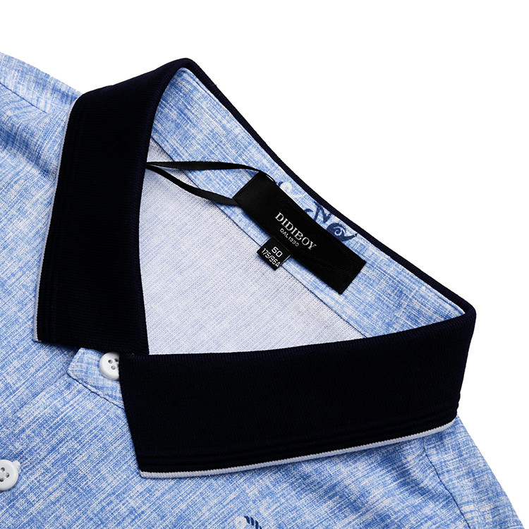 DIDIBOY/迪迪博迩浅蓝色男士短袖丝T男士短袖T恤花色潮流印花POLO衫轻薄夏季丝t爸爸款套头短t
