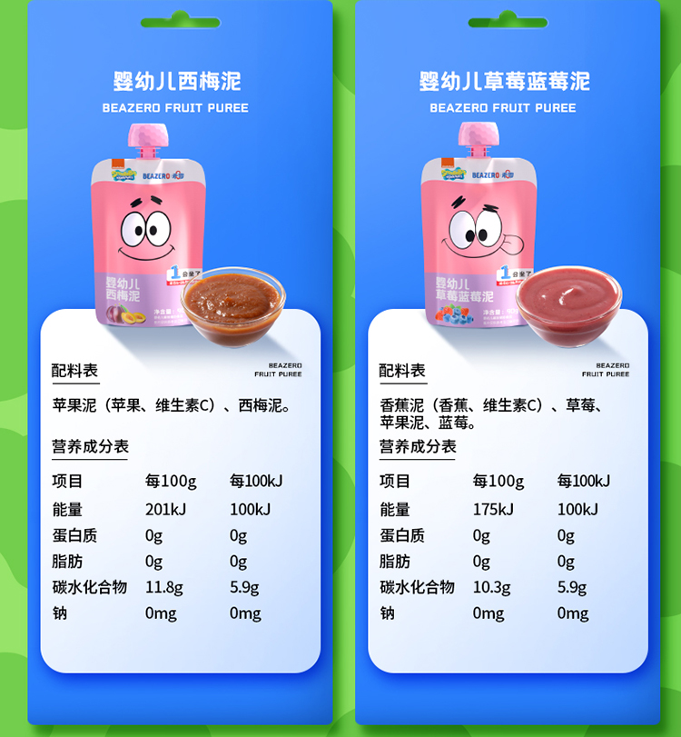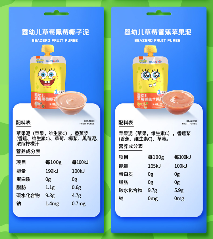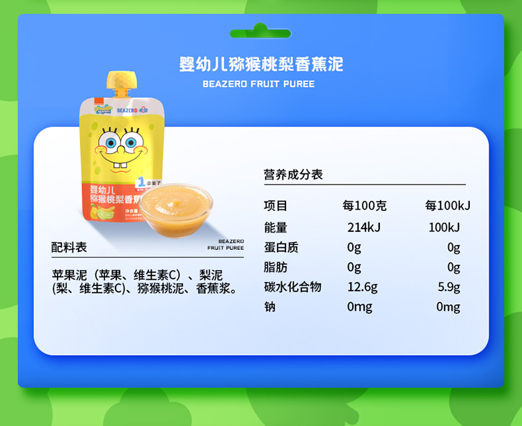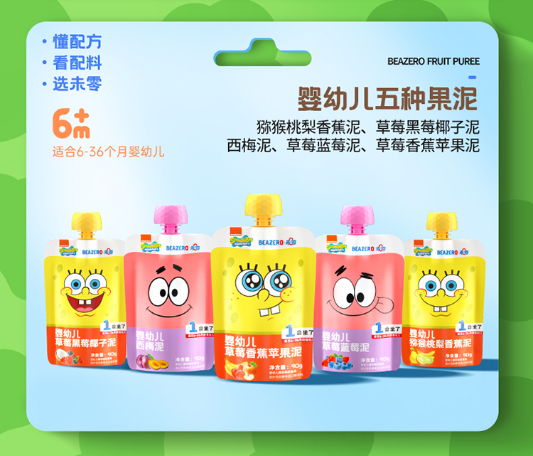 【超值秒杀】未零海绵宝宝婴幼儿婴标果泥90g(赏味期: 2026-06-29)