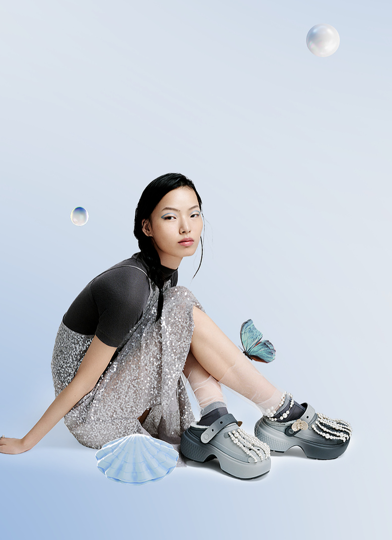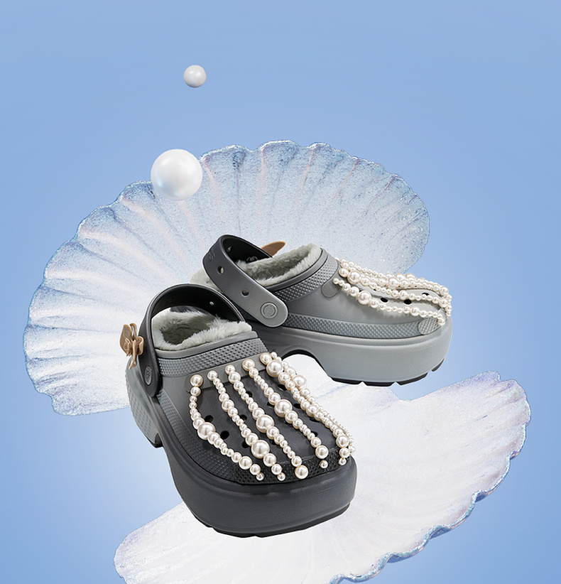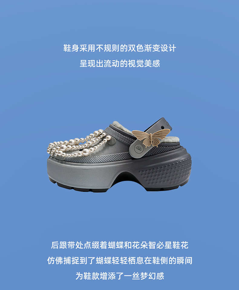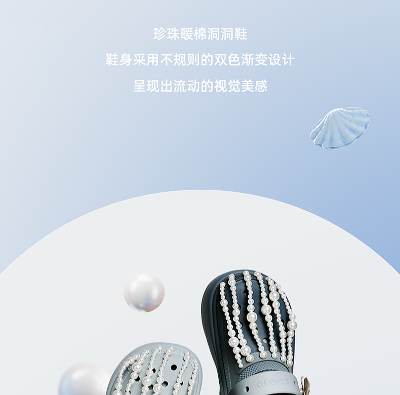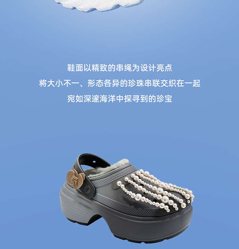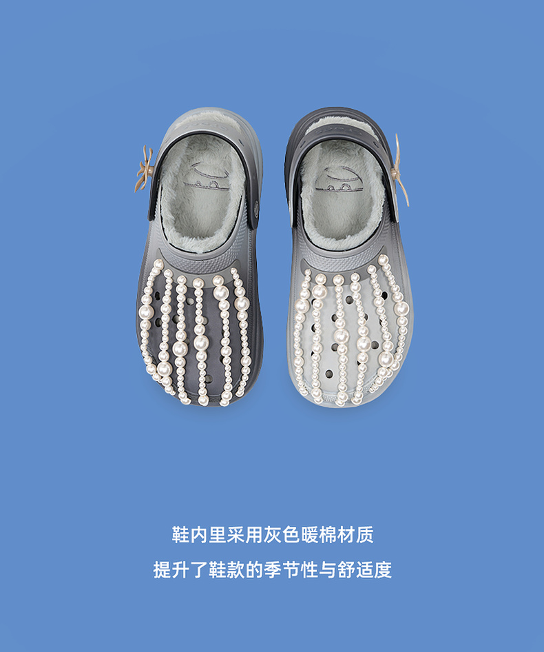 lost in echo X Crocs联名系列24冬季新款珍珠暖棉洞洞鞋女