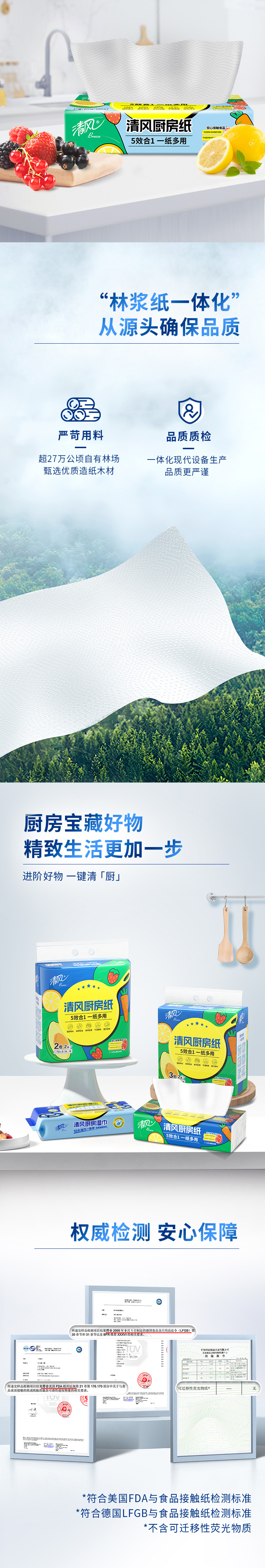 清风2层76张厨房取式纸巾3包B80CK1