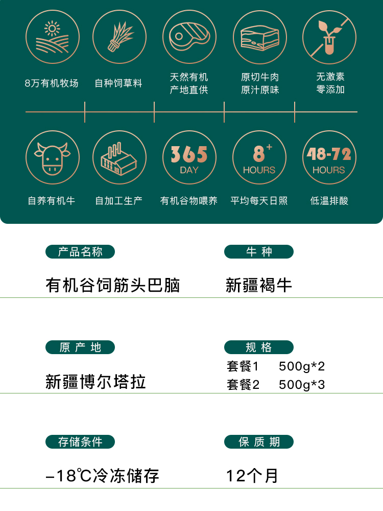 天莱香牛 新疆有机牛肉 筋头巴脑500g*3袋