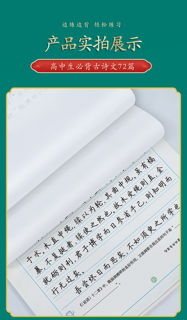 墨点字帖 高中生必背古诗文72篇 正楷字帖语文人教版高中同步必背古诗词荆霄鹏楷书字帖硬笔书法临摹字帖学生专用练习