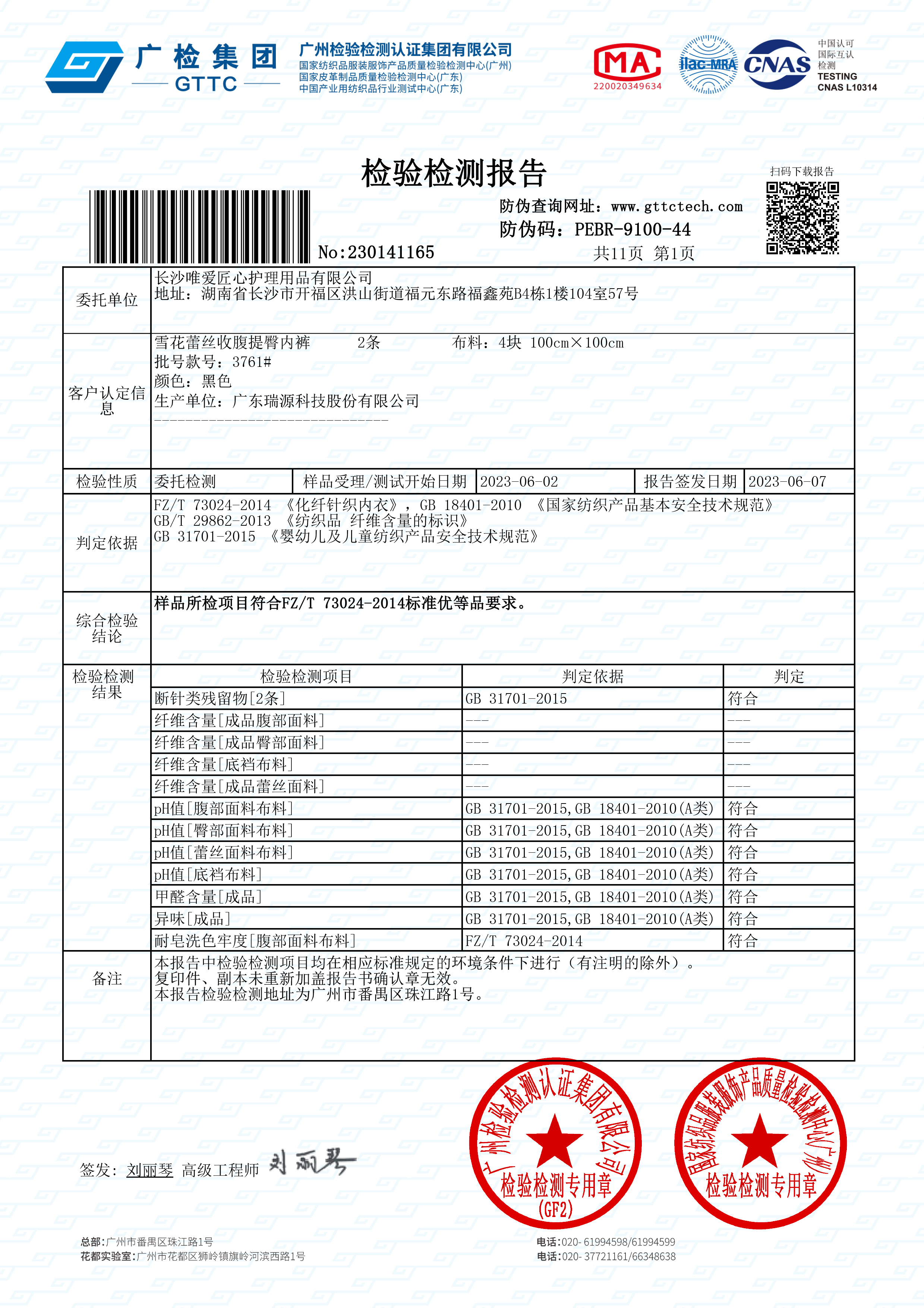 底裆 A 款: 粘纤 93.4% 氨纶 3.3% 锦纶 3.3%