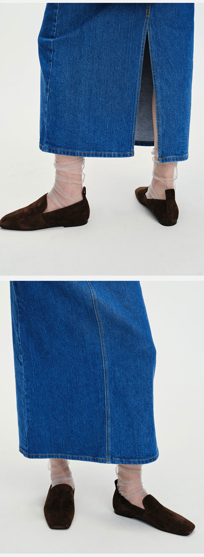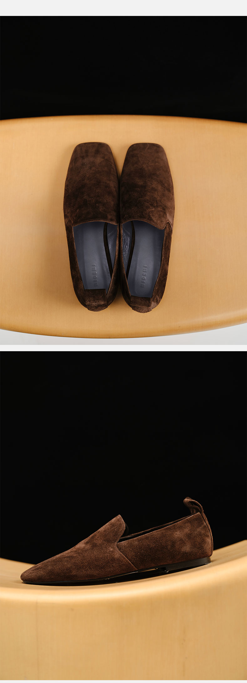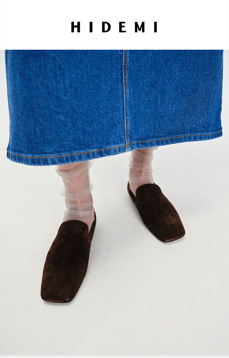 HIDEMI 经典款⽅头进⼝麂⽪平底鞋 棕⾊