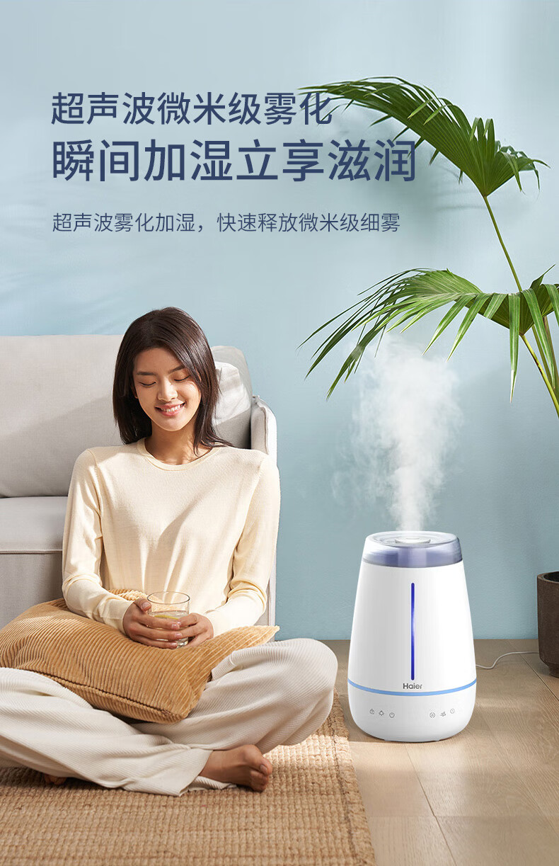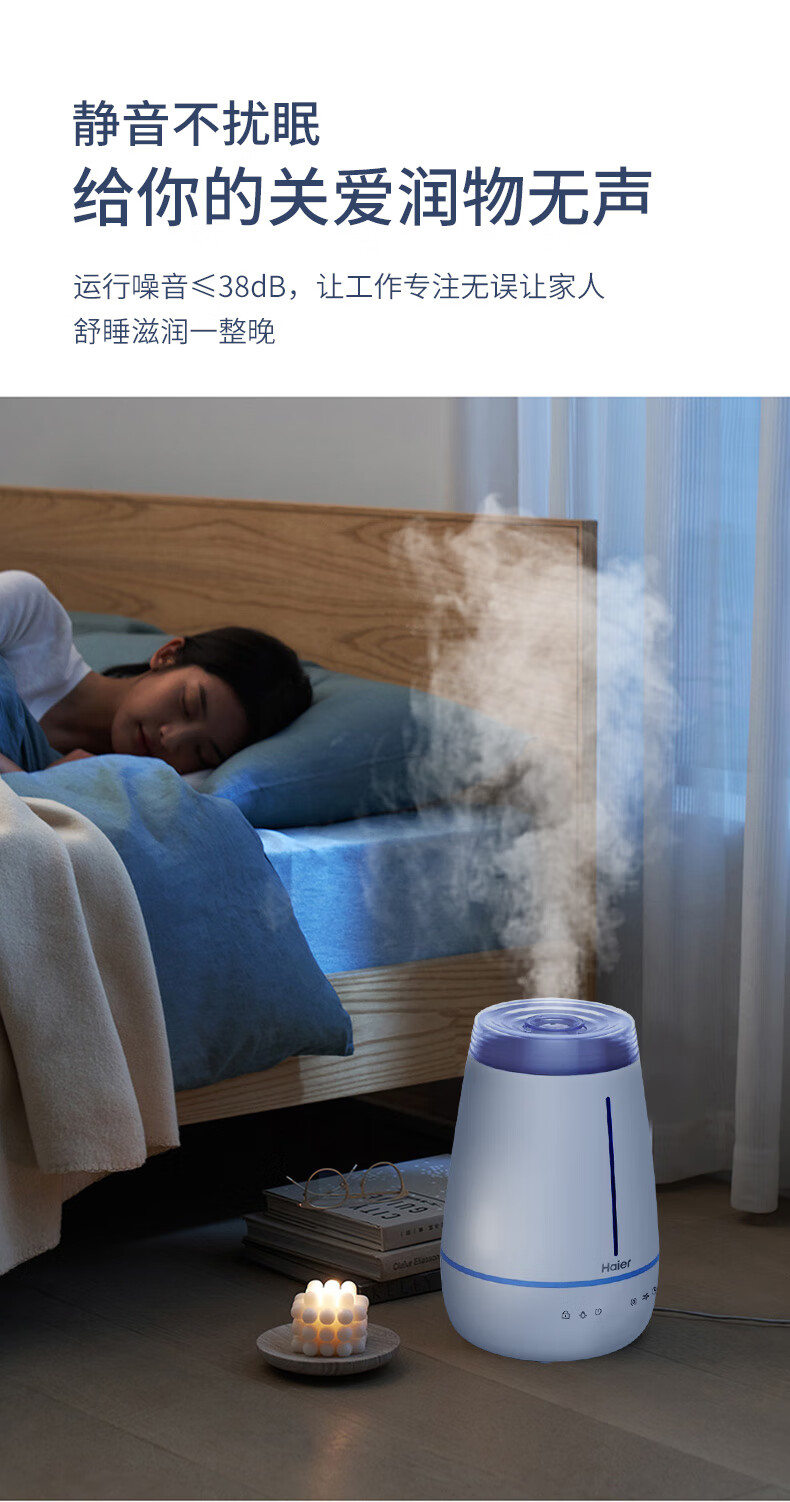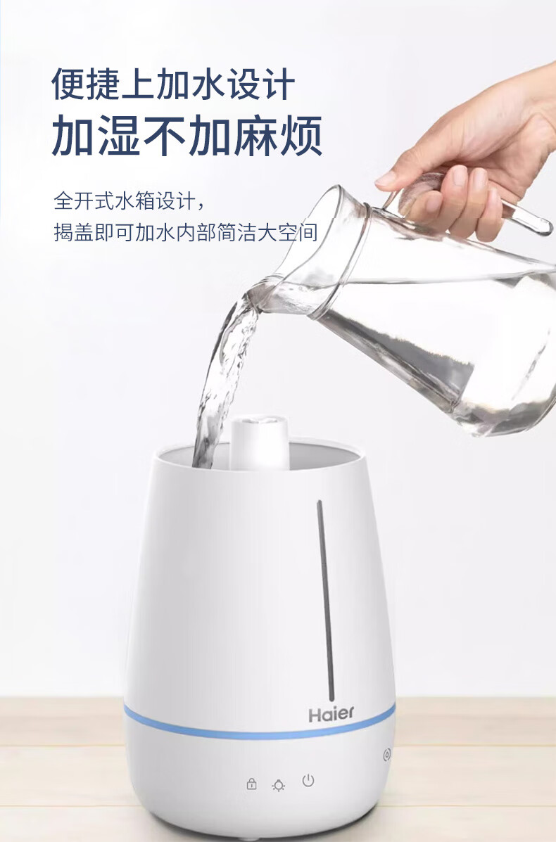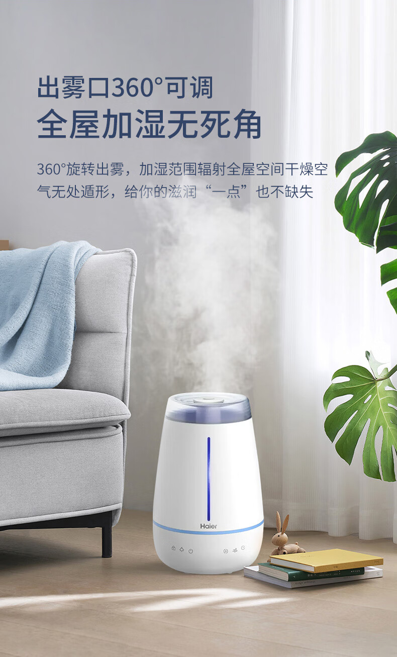 海尔(Haier)空气加湿器 卧室家用办公室婴儿孕妇低噪快速加湿大雾量水箱大容量 4.5L【机械旋钮】无极调节