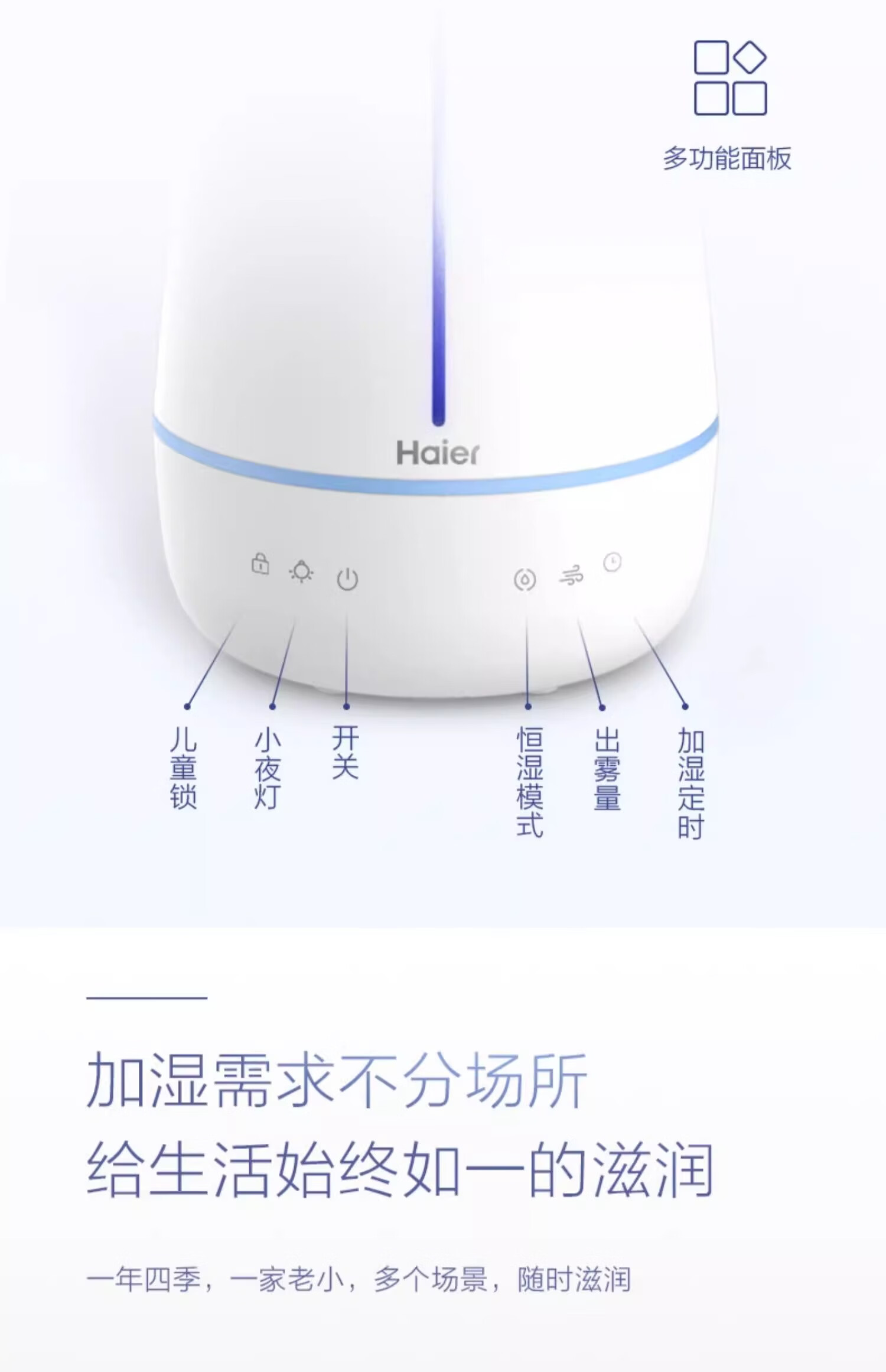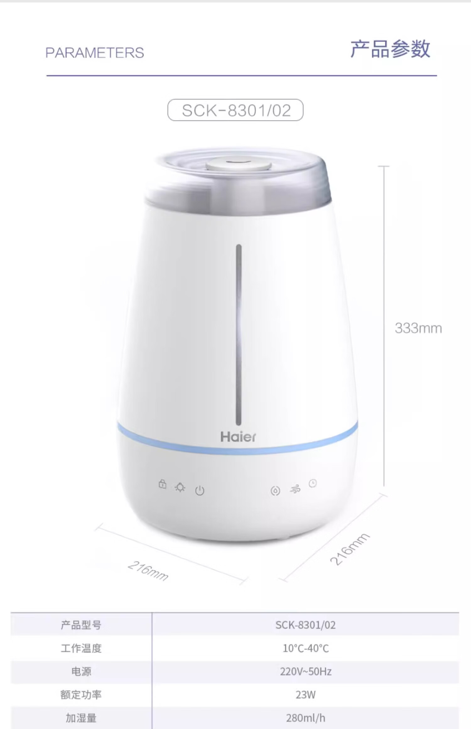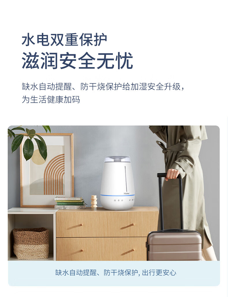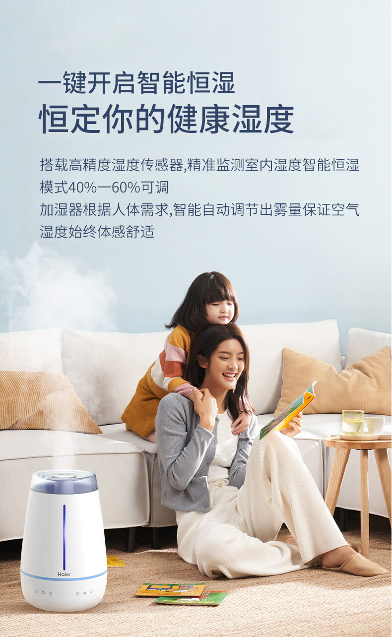 海尔(Haier)空气加湿器 卧室家用办公室婴儿孕妇低噪快速加湿大雾量水箱大容量 4.5L【机械旋钮】无极调节