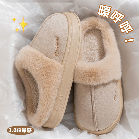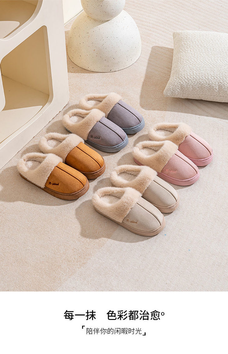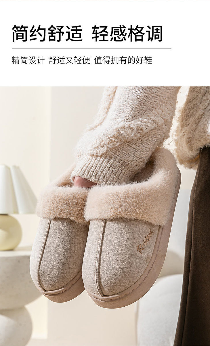 宅小年皮绒UG风加厚棉拖鞋