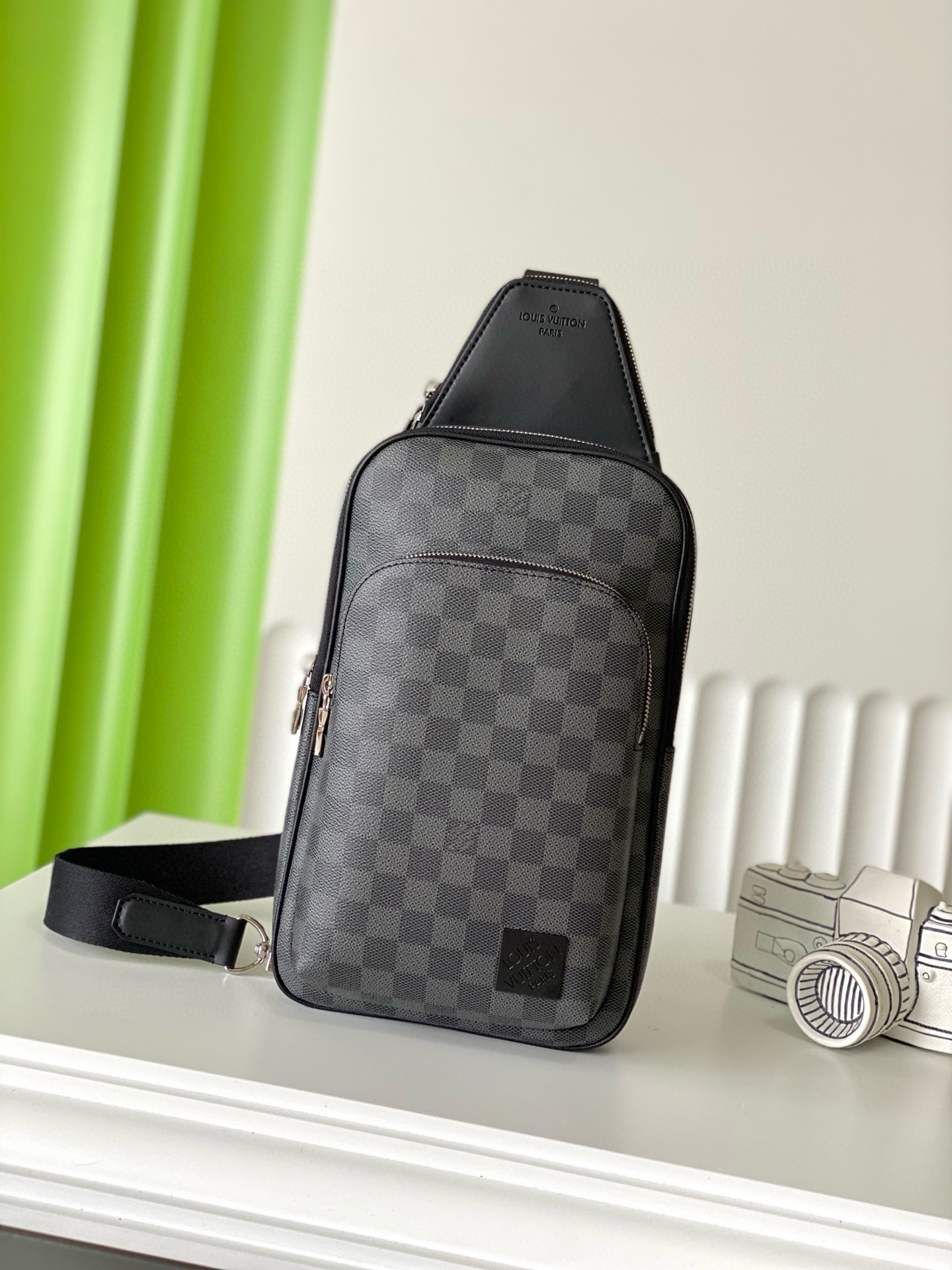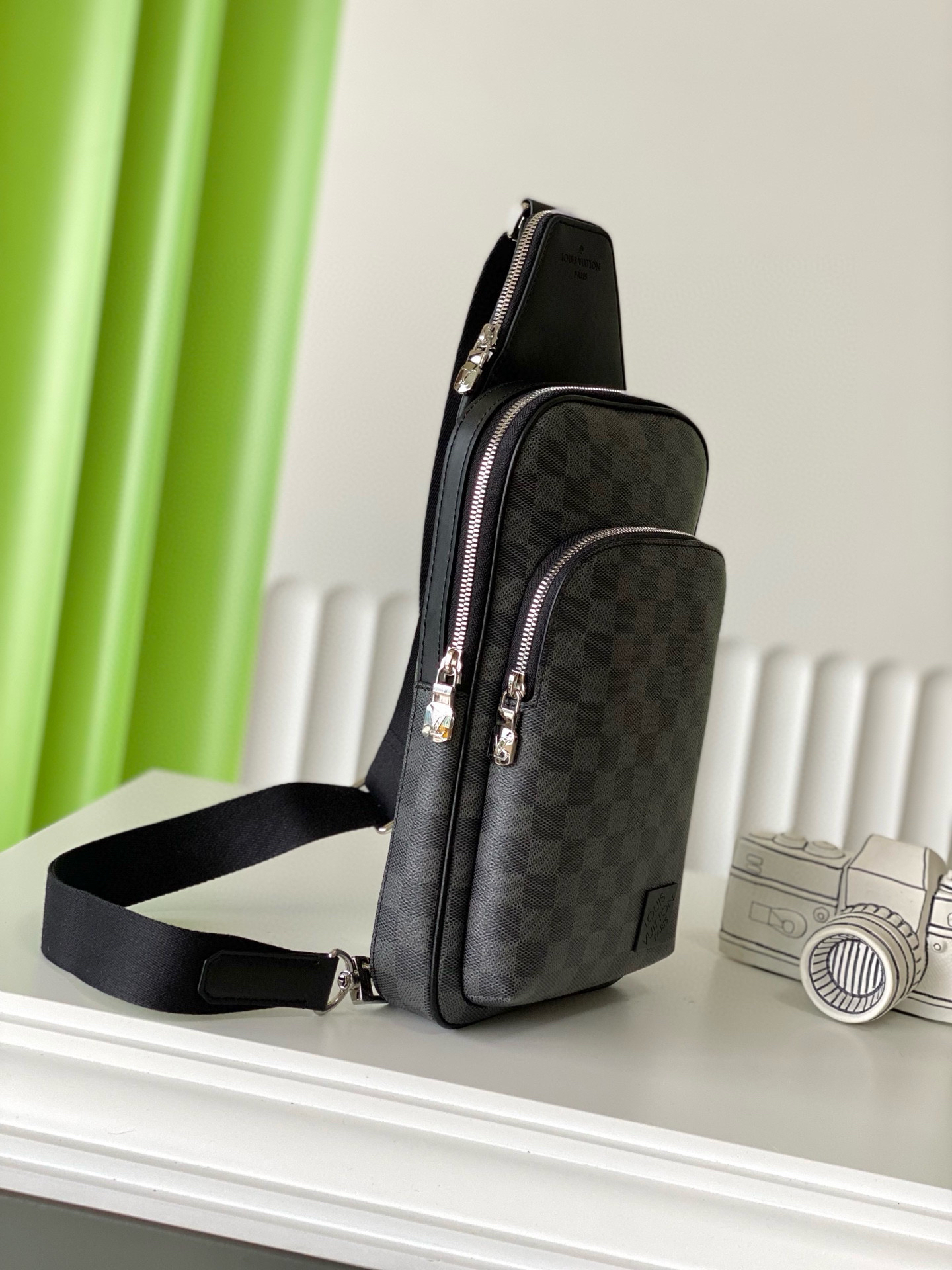 夏季特惠💰780 原单LV N45302 尺寸:20×31×7cm AUENUE NM 黑格单肩胸包 变码芯片