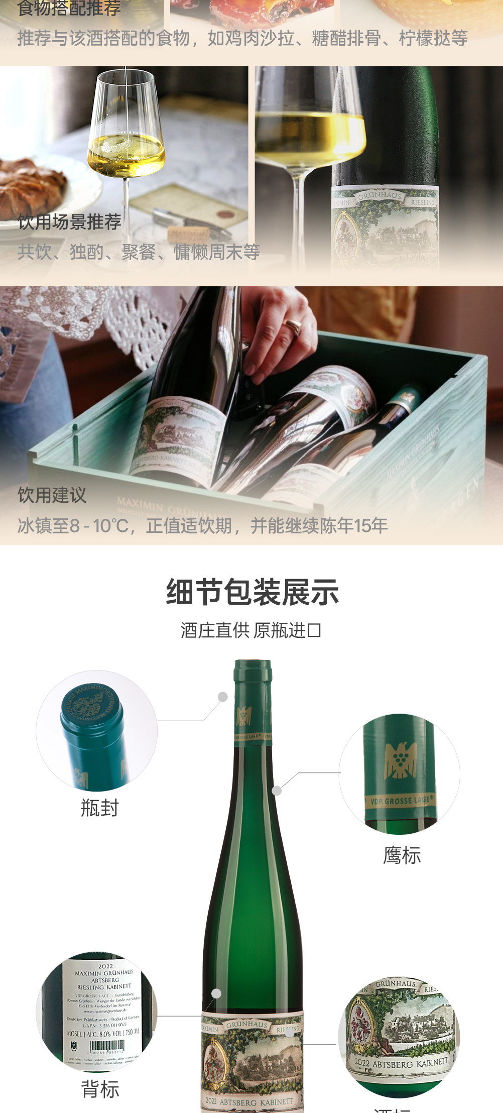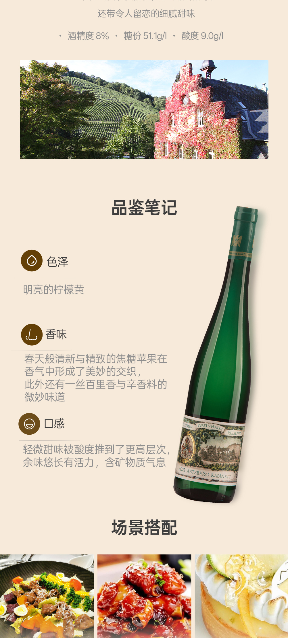 漫翠园雅思堡雷司令珍藏白葡萄酒2022 甜型 8%vol 750ml